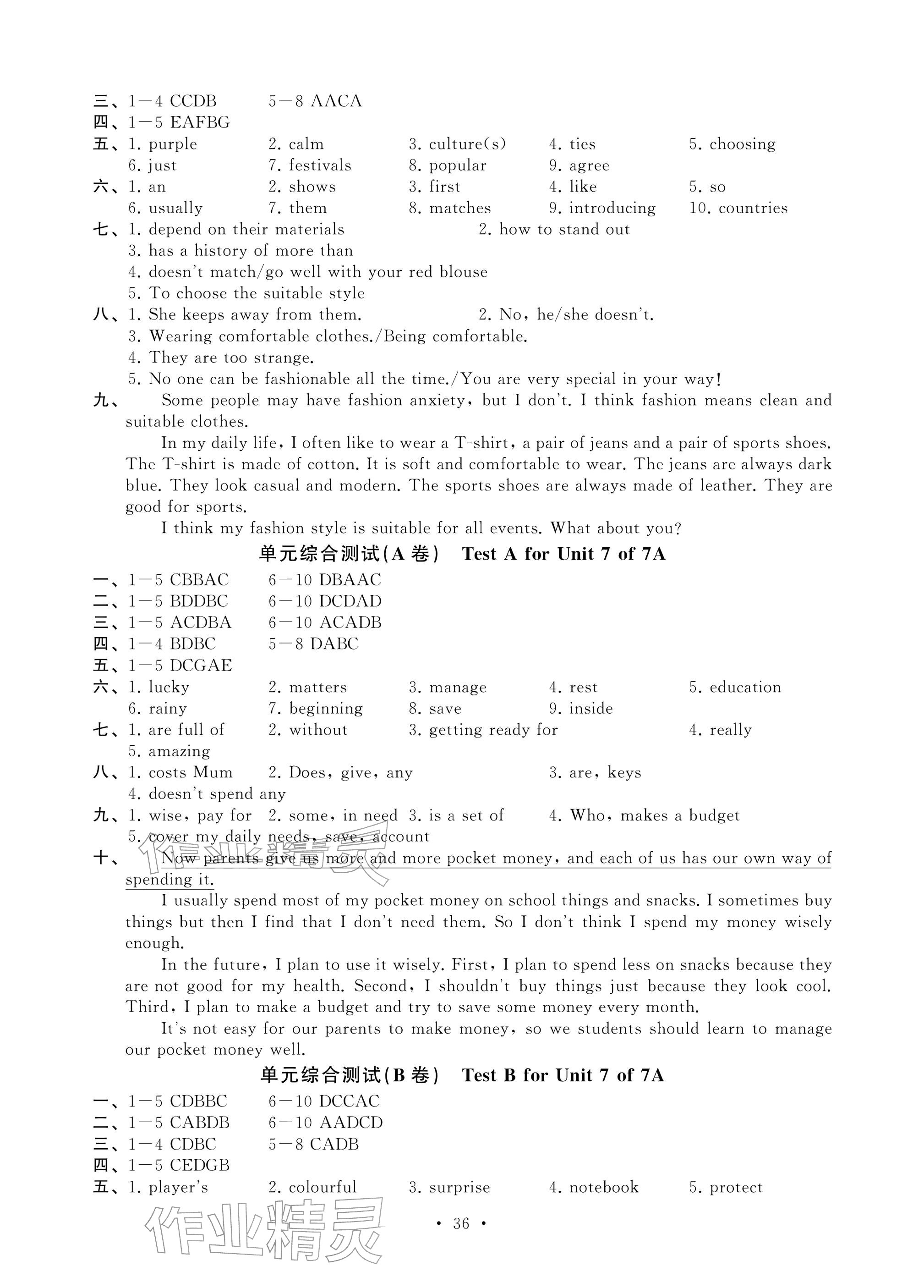2025年综合素质随堂反馈七年级英语上册译林版苏州专版参考答案第28页