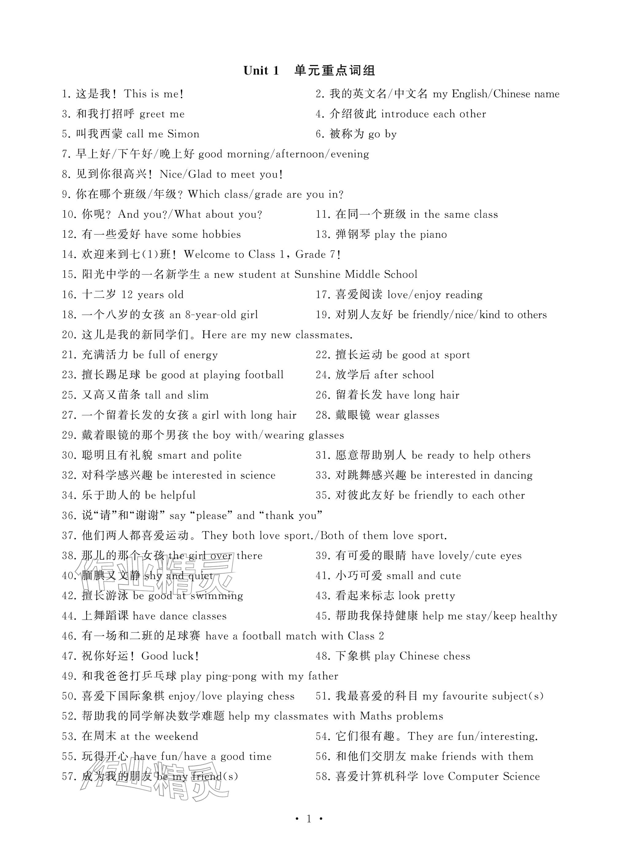 2025年综合素质随堂反馈七年级英语上册译林版苏州专版参考答案第31页