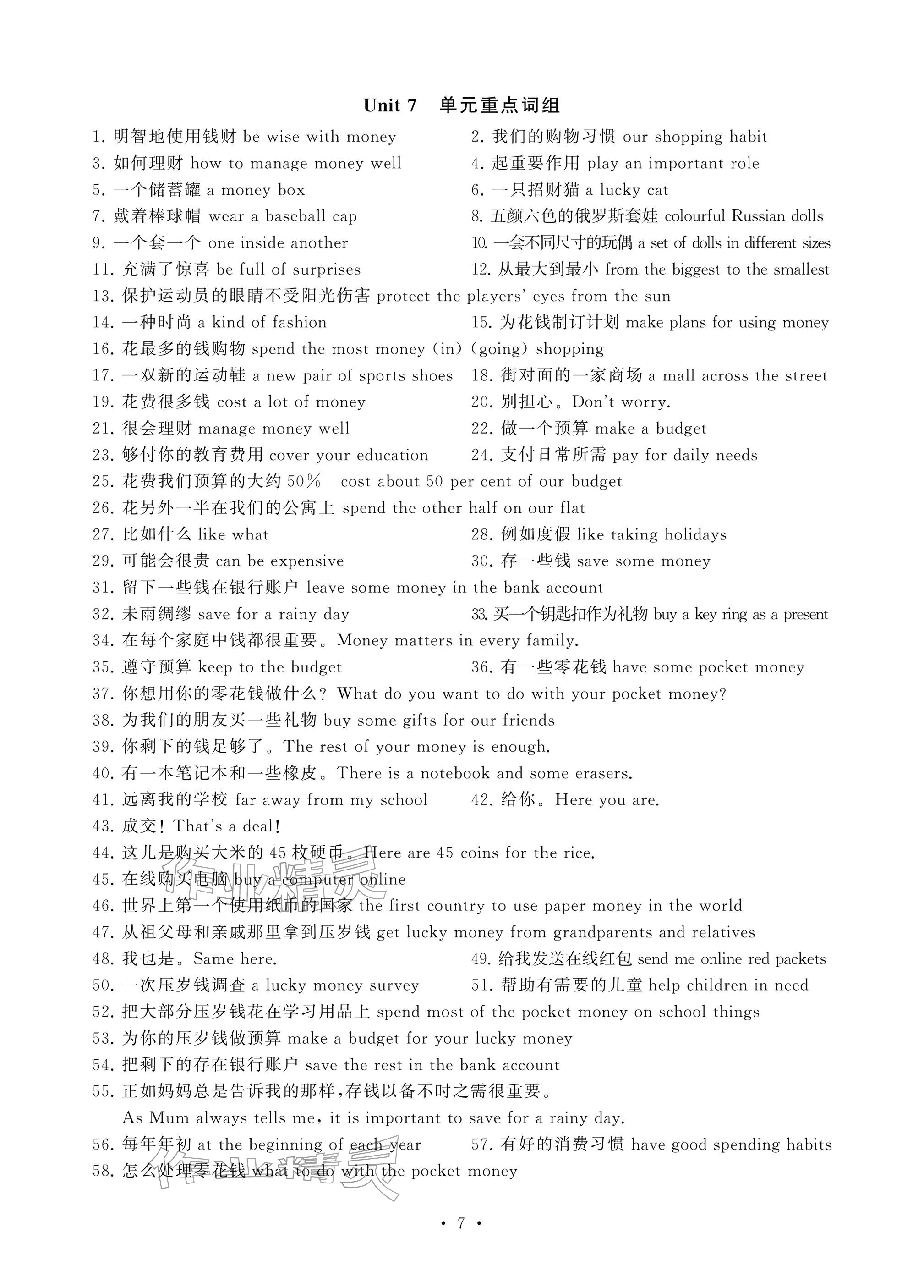 2025年综合素质随堂反馈七年级英语上册译林版苏州专版参考答案第37页