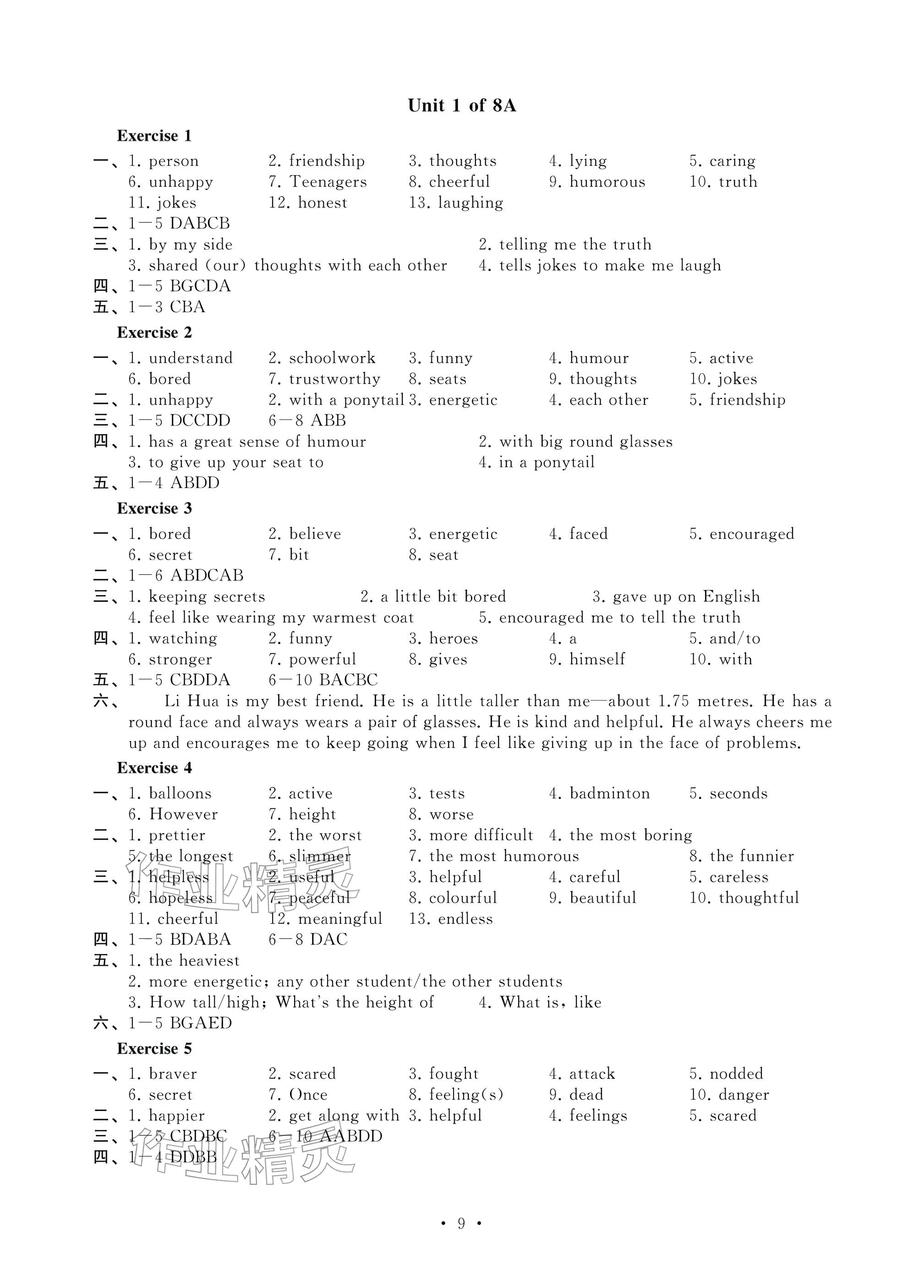 2025年综合素质随堂反馈八年级英语上册译林版苏州专版参考答案第1页