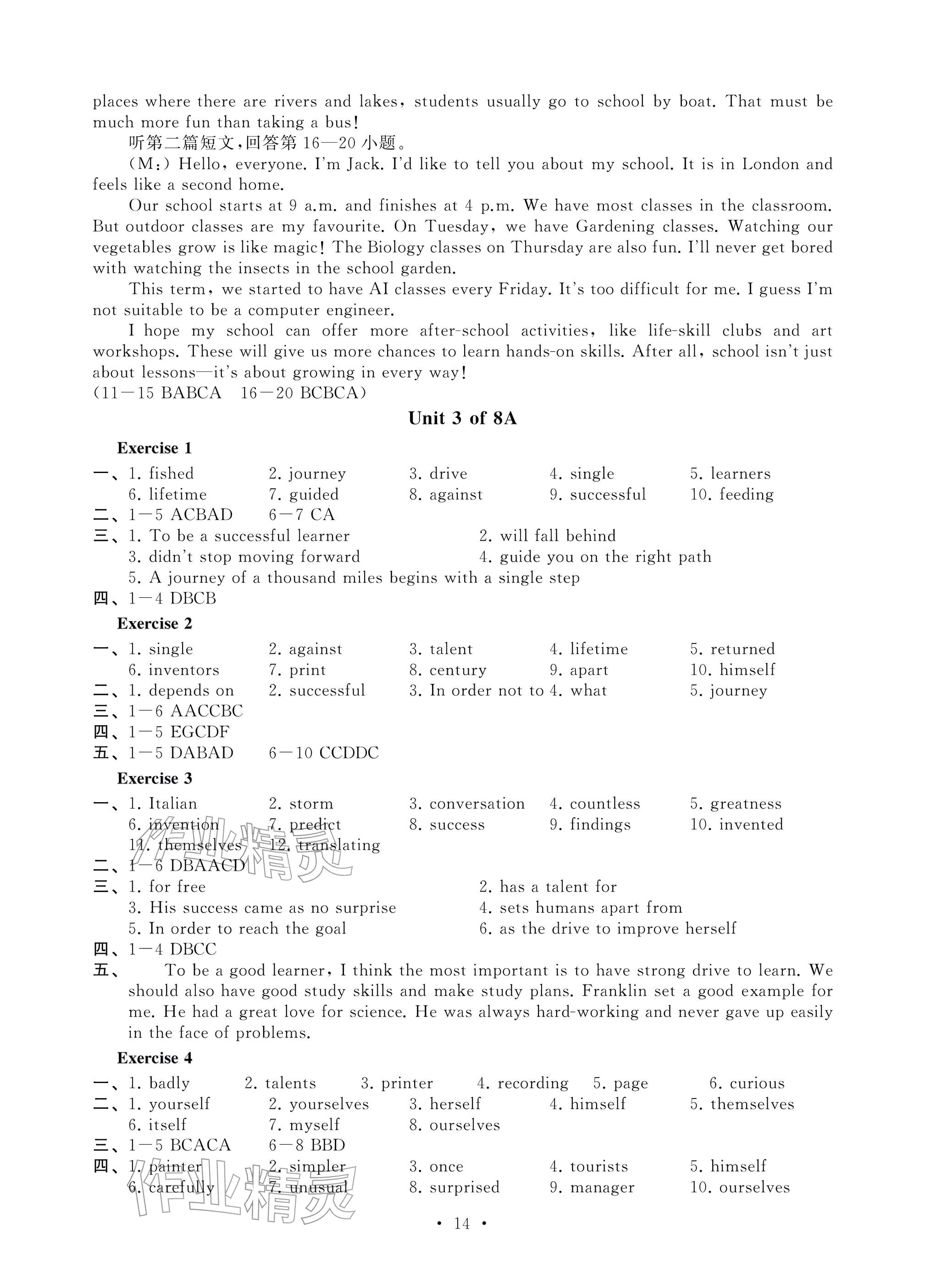 2025年综合素质随堂反馈八年级英语上册译林版苏州专版参考答案第6页