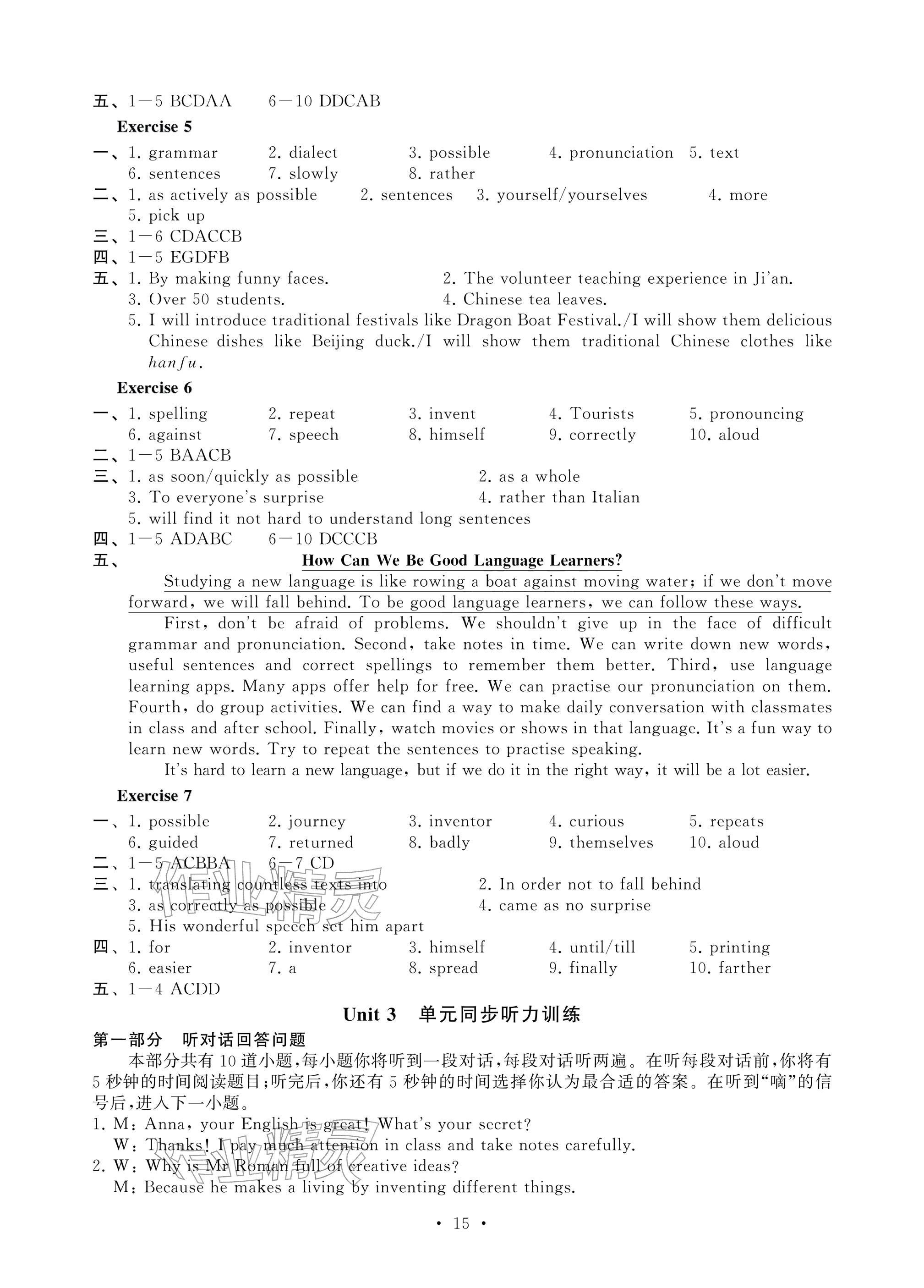 2025年综合素质随堂反馈八年级英语上册译林版苏州专版参考答案第7页