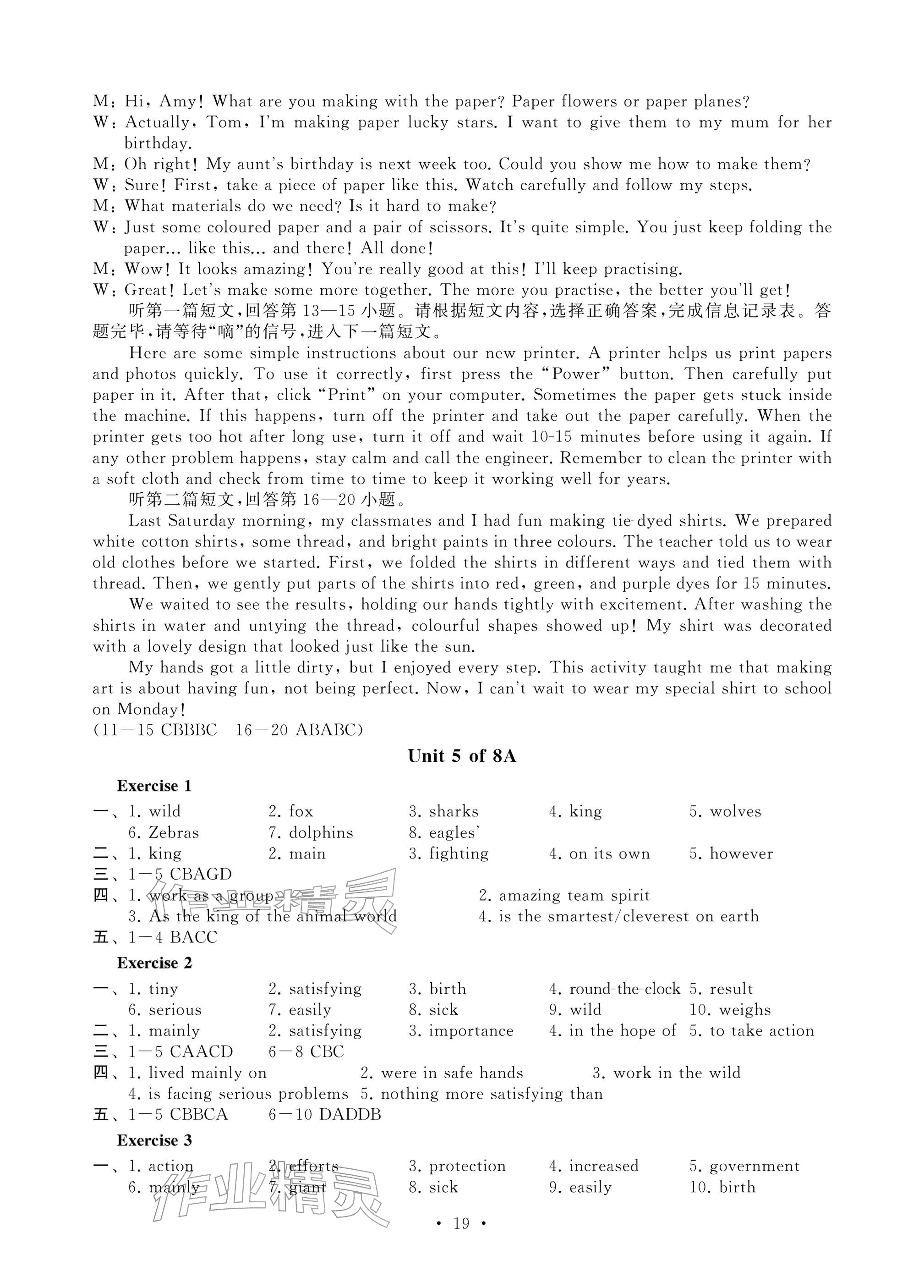 2025年综合素质随堂反馈八年级英语上册译林版苏州专版参考答案第11页