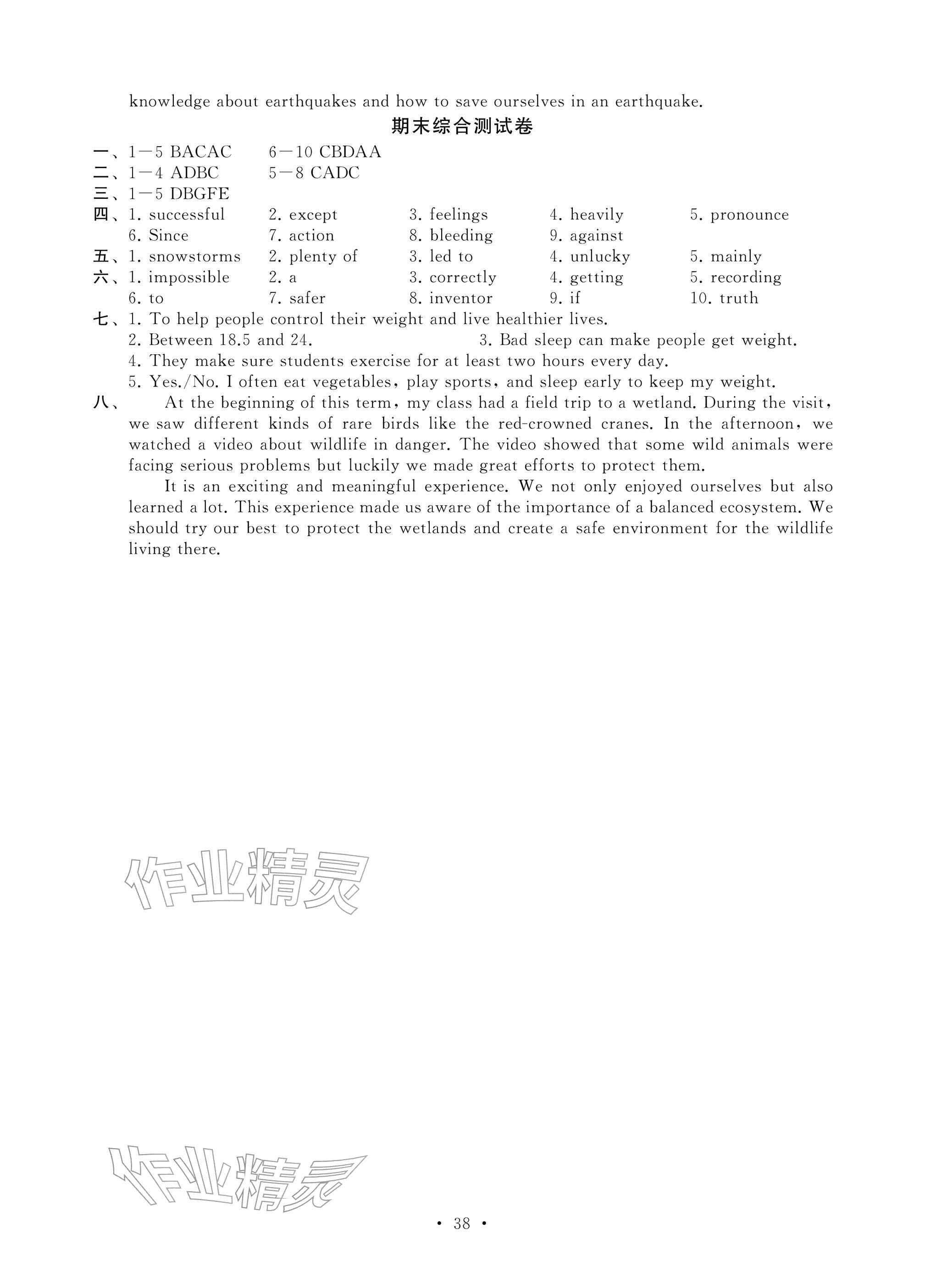 2025年综合素质随堂反馈八年级英语上册译林版苏州专版参考答案第30页