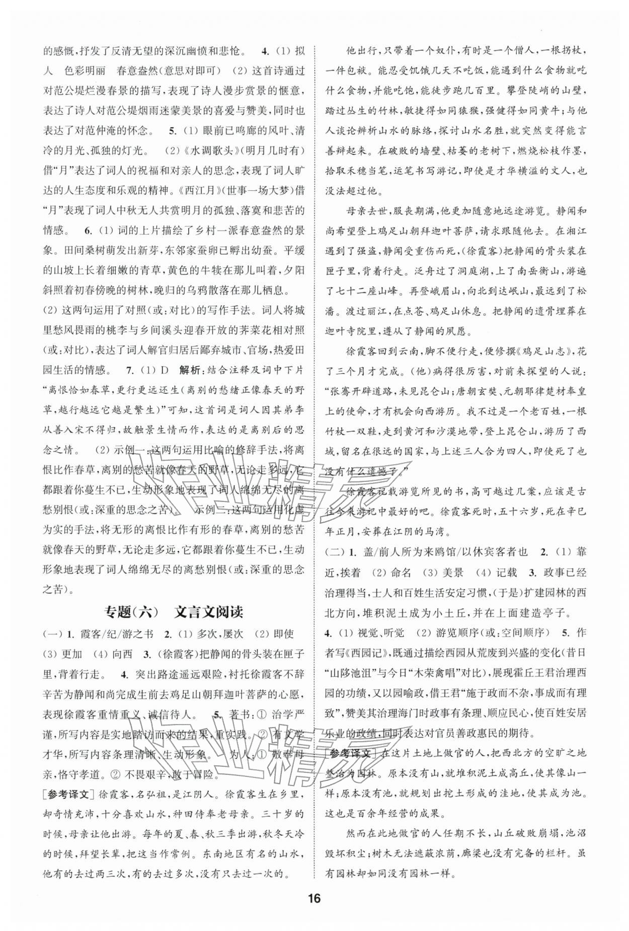 2026年通城学典课时作业本九年级语文下册人教版南通专版第16页