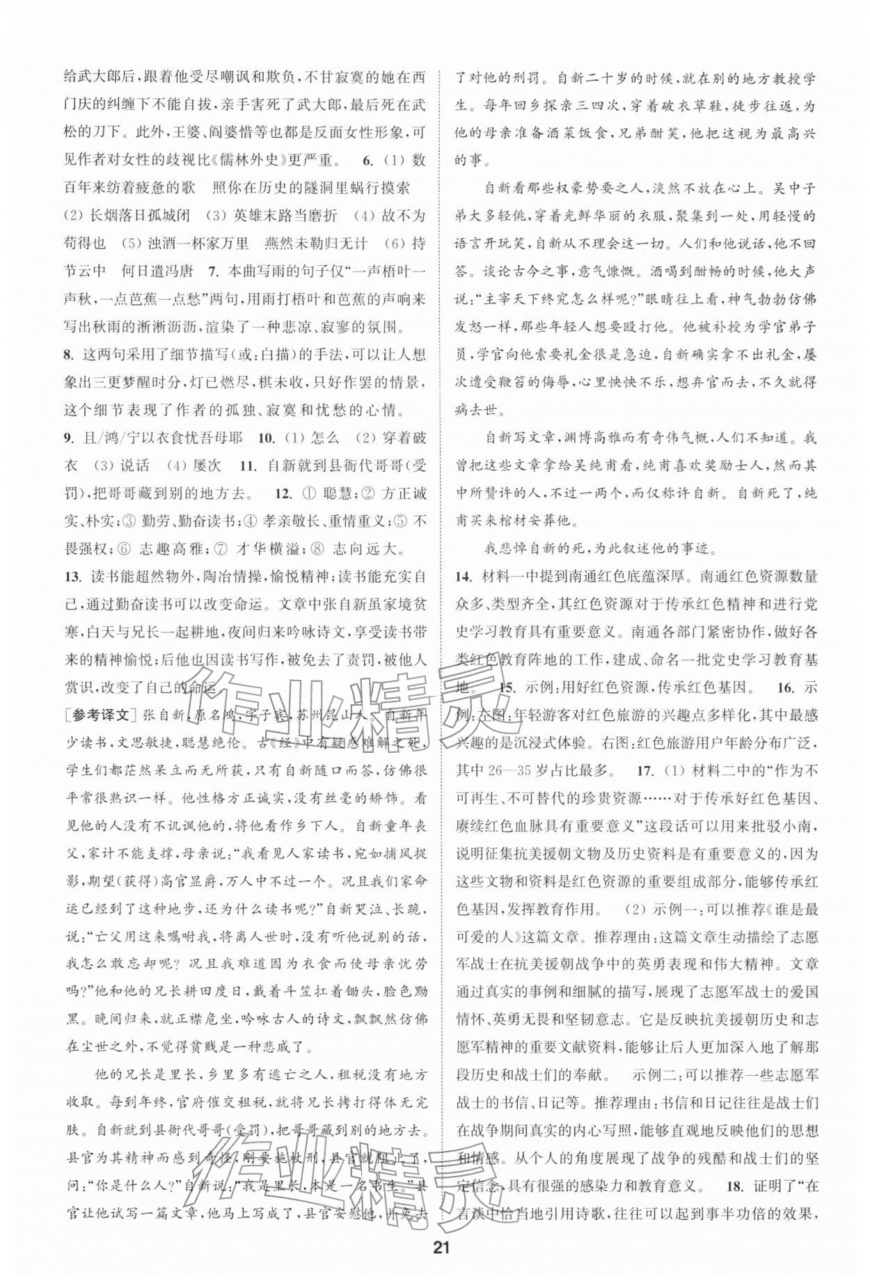 2026年通城学典课时作业本九年级语文下册人教版南通专版第21页