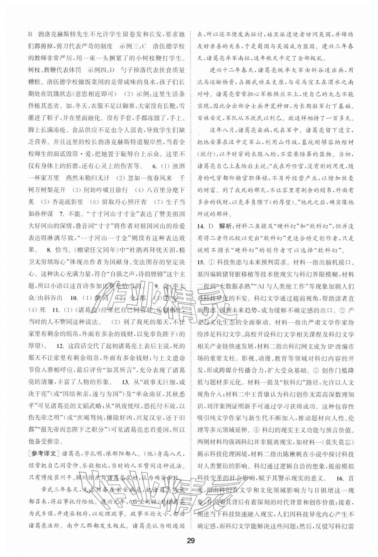 2026年通城学典课时作业本九年级语文下册人教版南通专版第29页