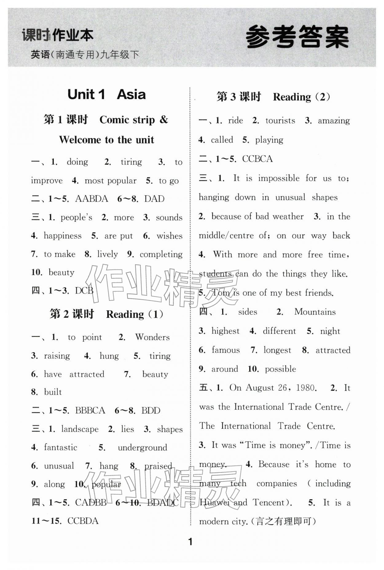 2026年通城学典课时作业本九年级英语下册译林版南通专版第1页