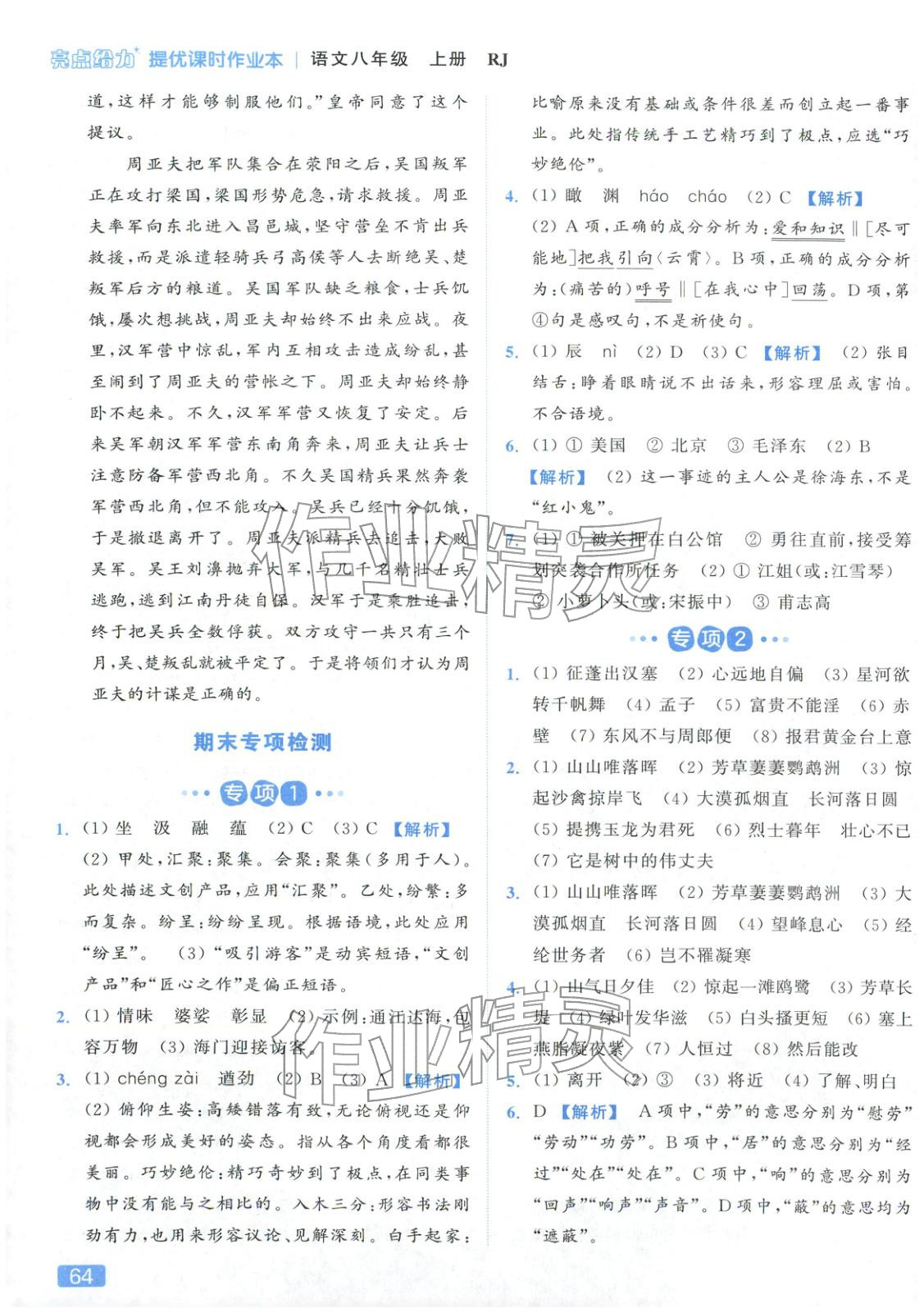 2026年亮点给力提优课时作业本八年级语文上册人教版参考答案第64页