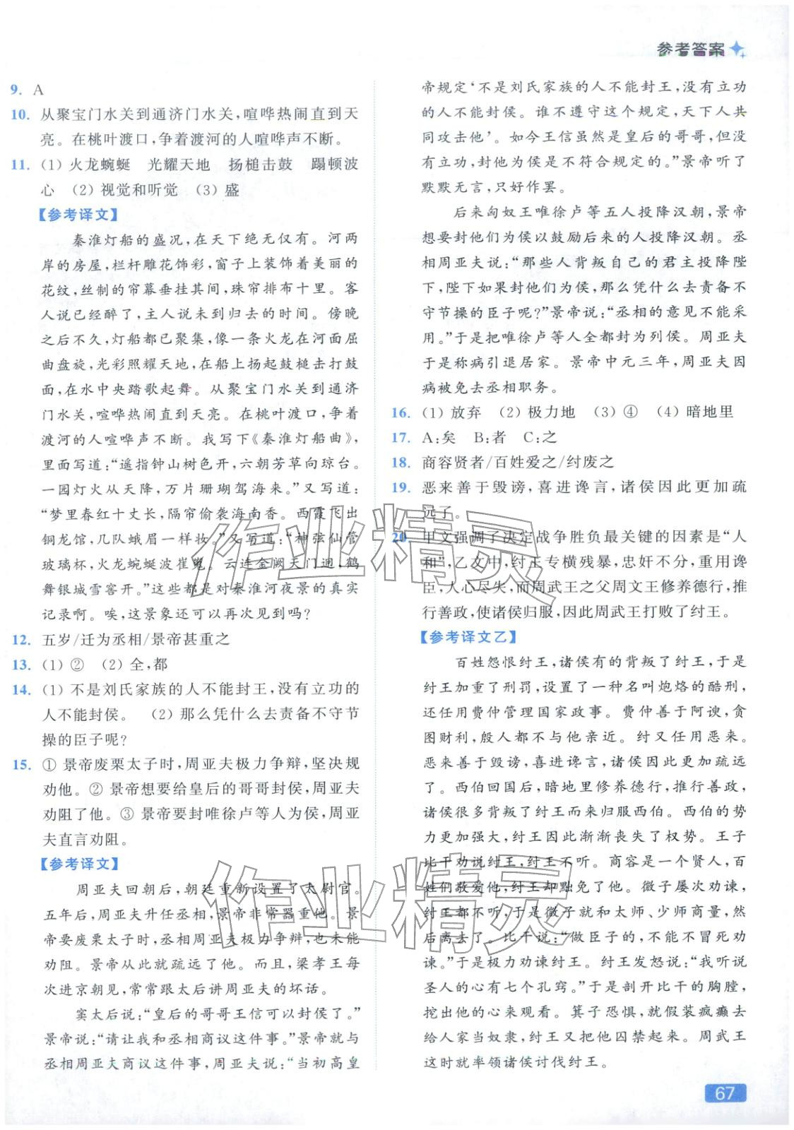 2026年亮点给力提优课时作业本八年级语文上册人教版参考答案第67页
