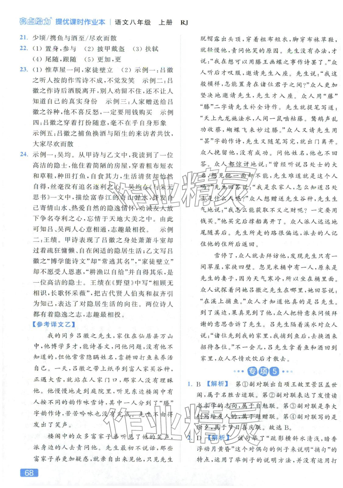 2026年亮点给力提优课时作业本八年级语文上册人教版参考答案第68页