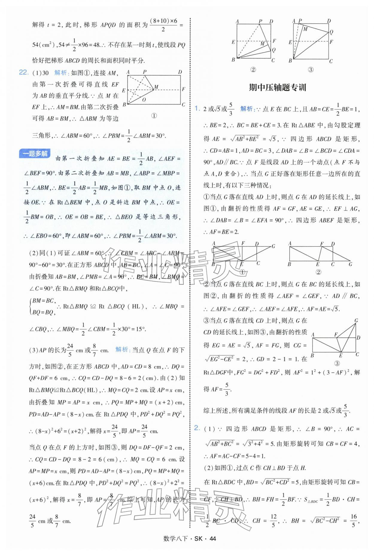 2026年学霸题中题八年级数学下册苏科版参考答案第44页