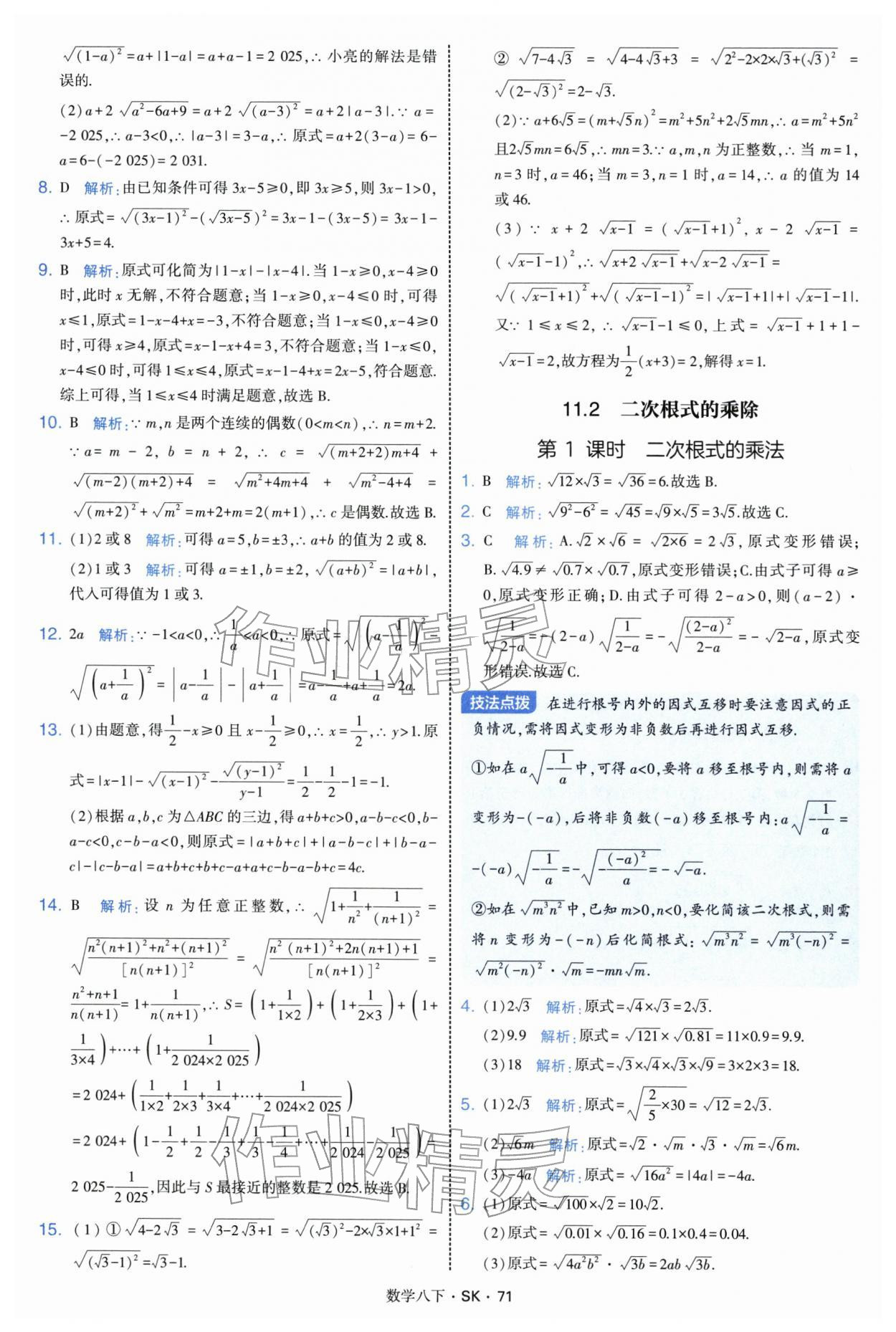 2026年学霸题中题八年级数学下册苏科版参考答案第71页