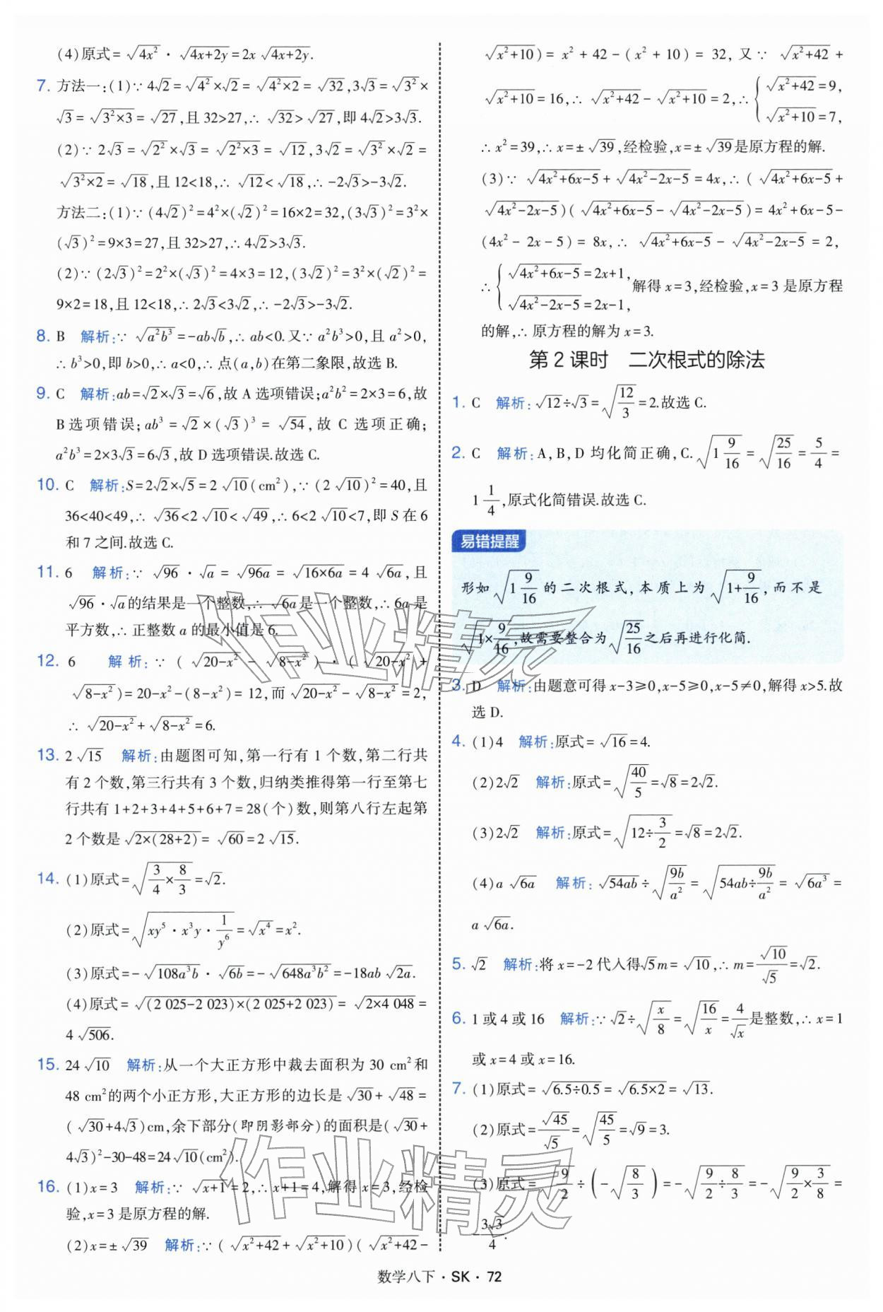 2026年学霸题中题八年级数学下册苏科版参考答案第72页