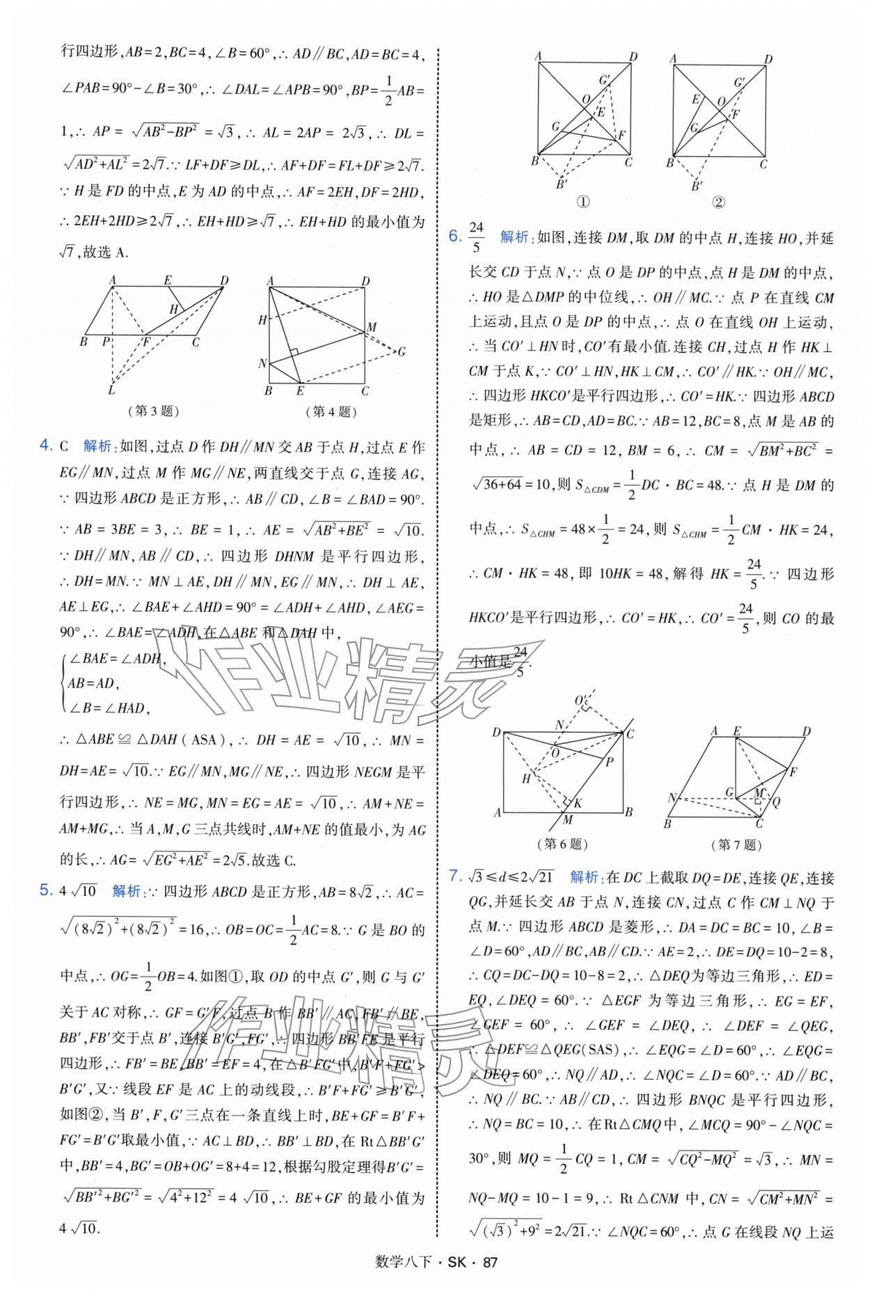 2026年学霸题中题八年级数学下册苏科版参考答案第87页