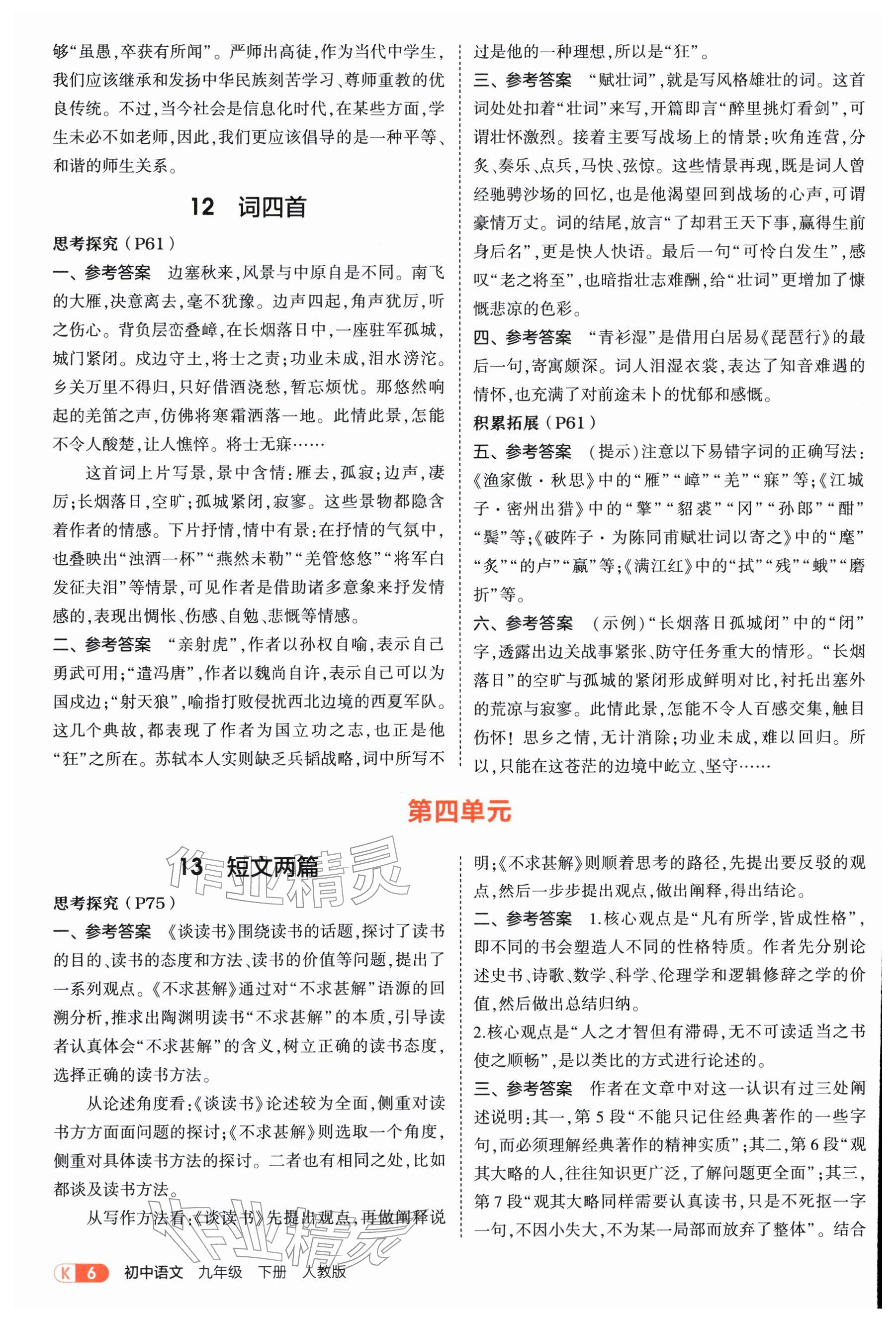 2026年教材课本九年级语文下册人教版参考答案第6页