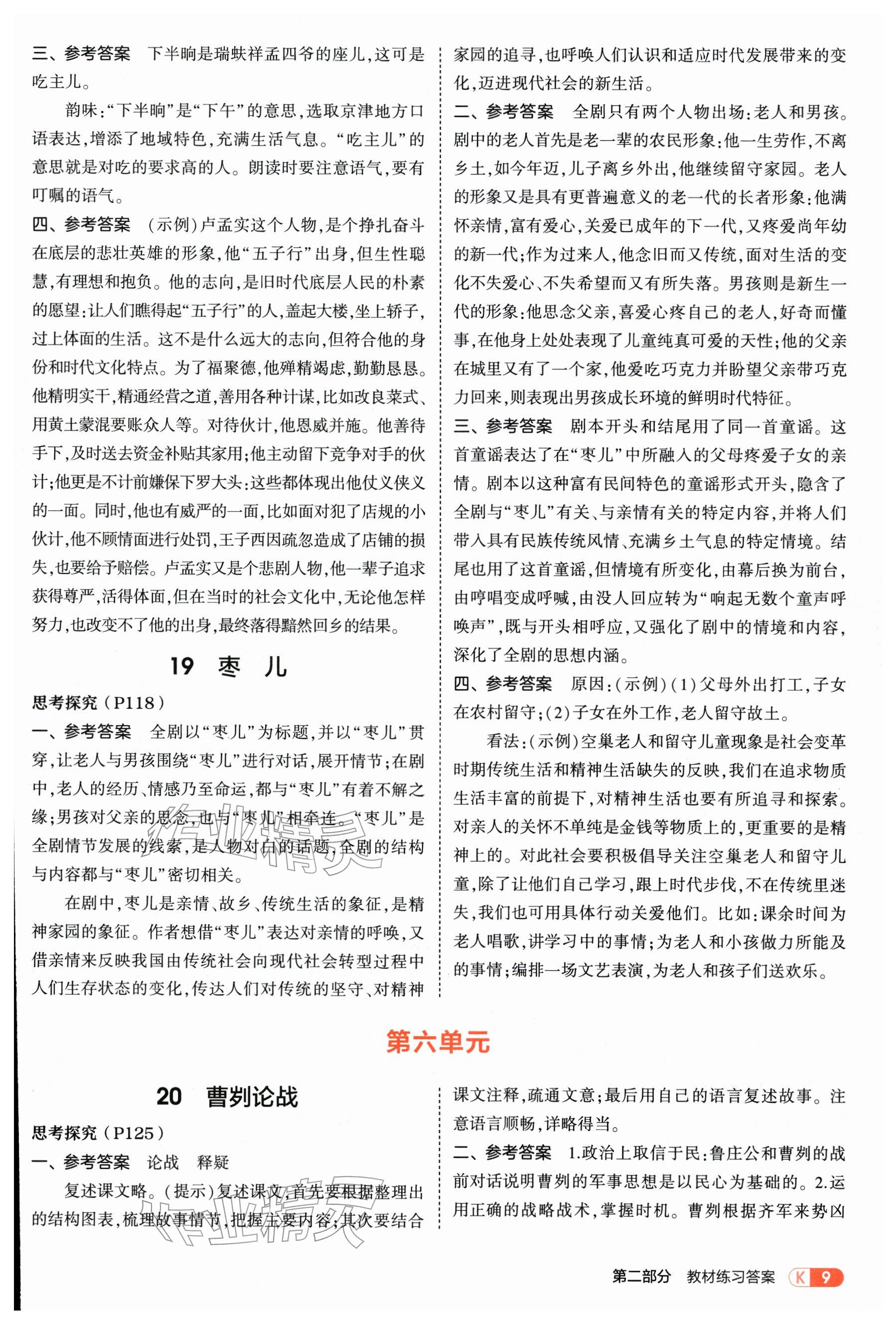 2026年教材课本九年级语文下册人教版参考答案第9页