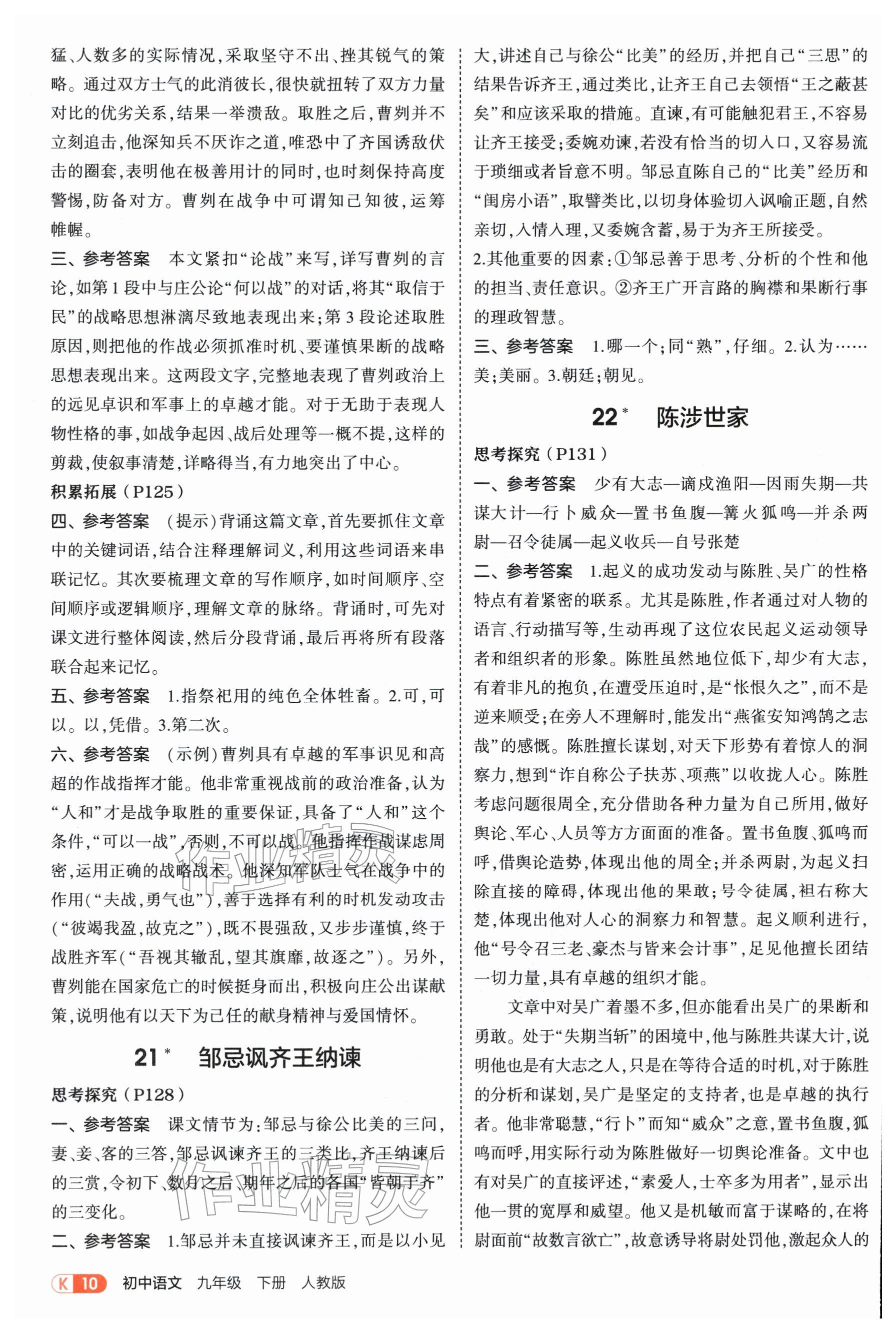 2026年教材课本九年级语文下册人教版参考答案第10页