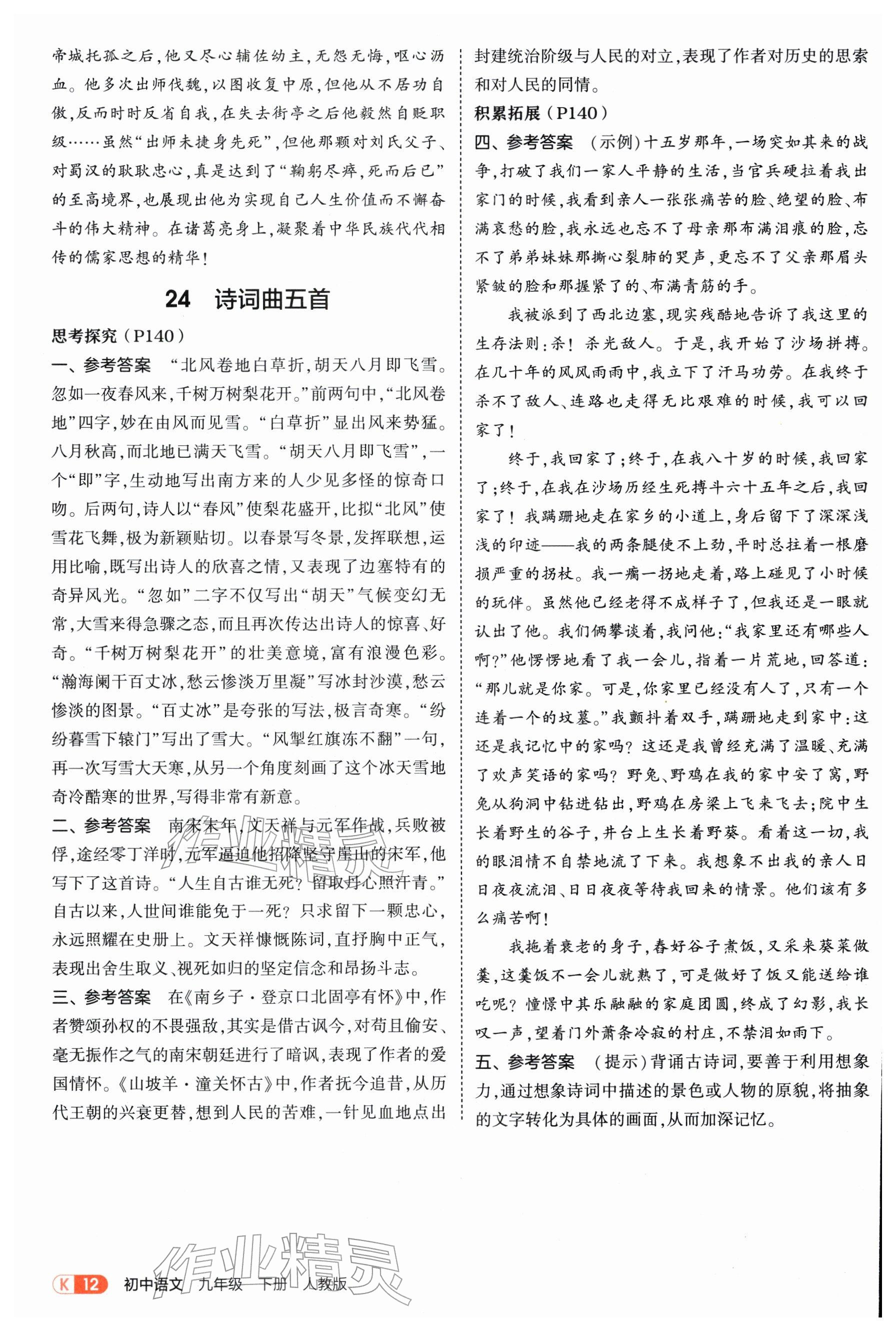 2026年教材课本九年级语文下册人教版参考答案第12页