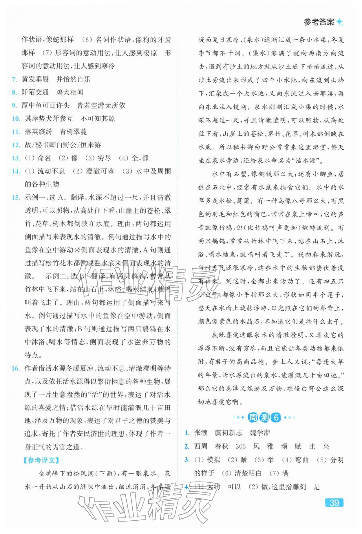 2026年亮点给力提优课时作业本八年级语文下册人教版参考答案第39页