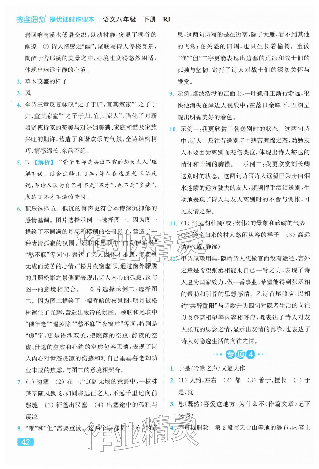 2026年亮点给力提优课时作业本八年级语文下册人教版参考答案第42页