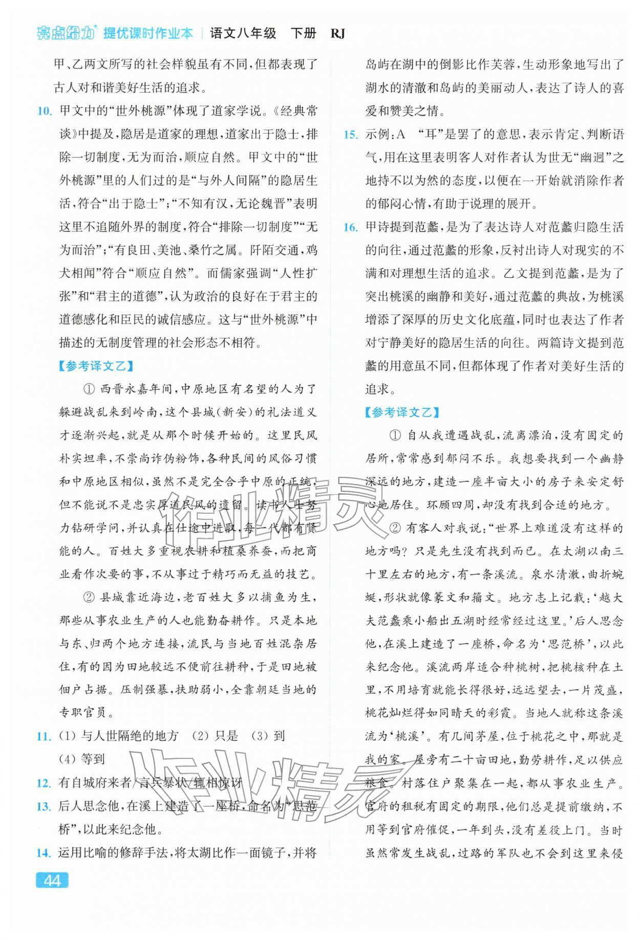 2026年亮点给力提优课时作业本八年级语文下册人教版参考答案第44页