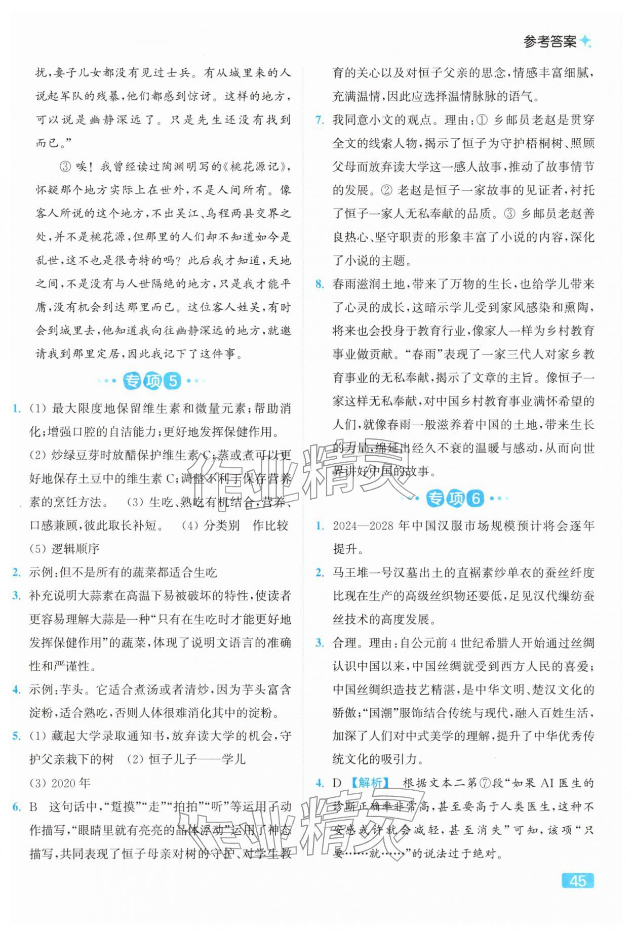 2026年亮点给力提优课时作业本八年级语文下册人教版参考答案第45页