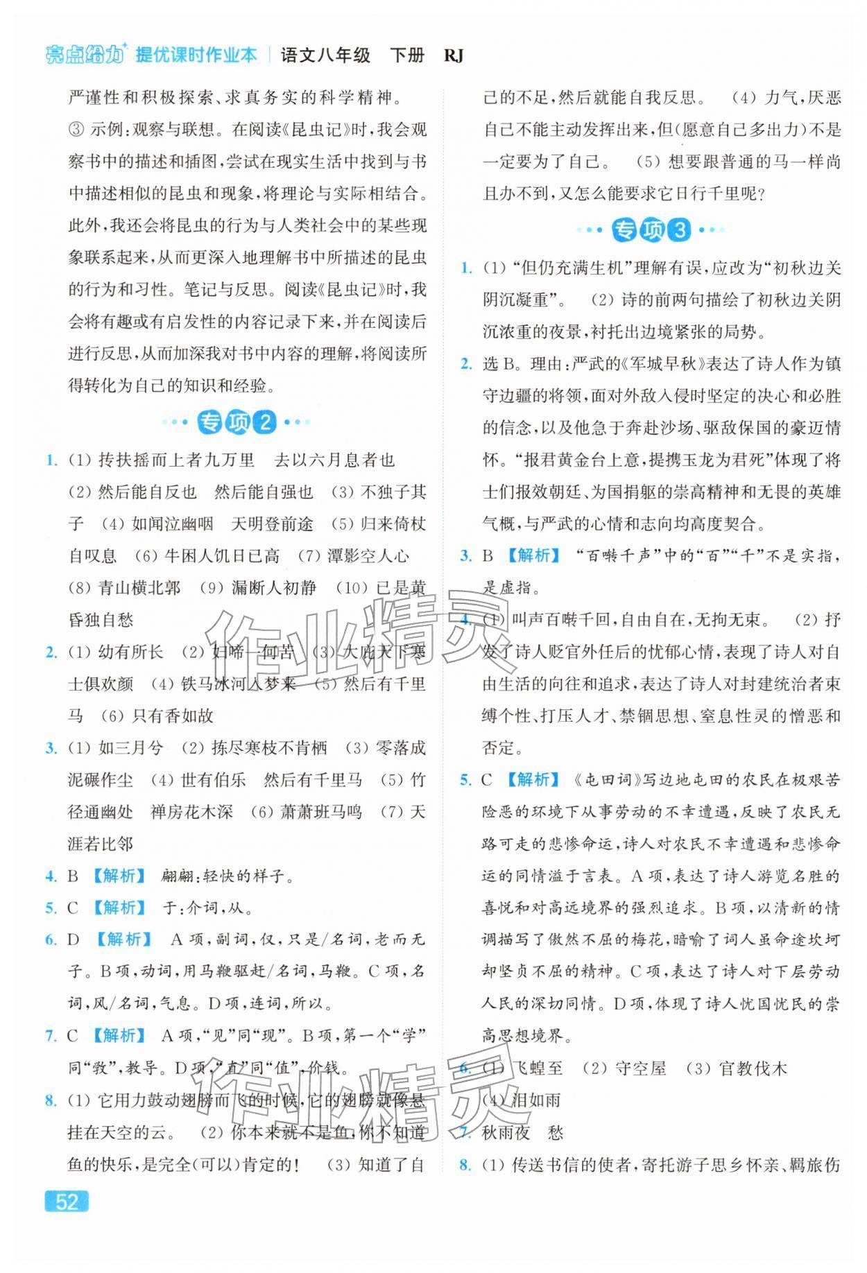 2026年亮点给力提优课时作业本八年级语文下册人教版参考答案第52页
