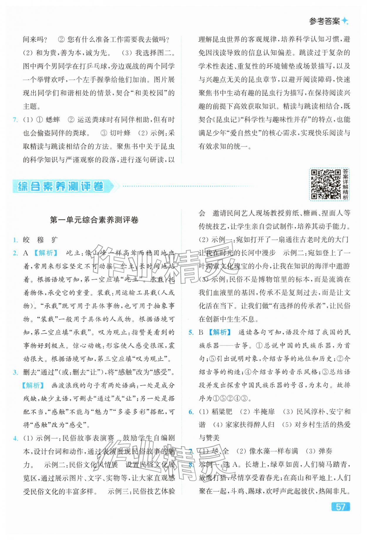 2026年亮点给力提优课时作业本八年级语文下册人教版参考答案第57页