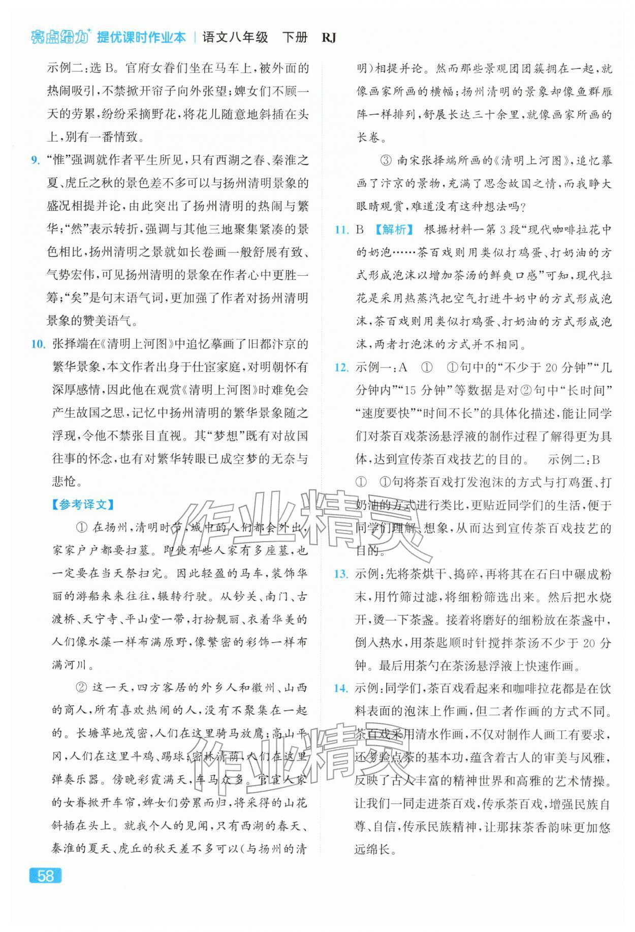 2026年亮点给力提优课时作业本八年级语文下册人教版参考答案第58页