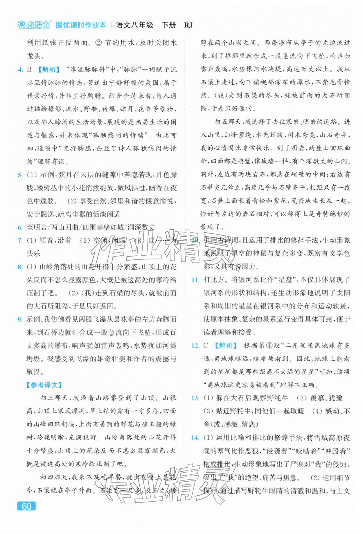 2026年亮点给力提优课时作业本八年级语文下册人教版参考答案第60页