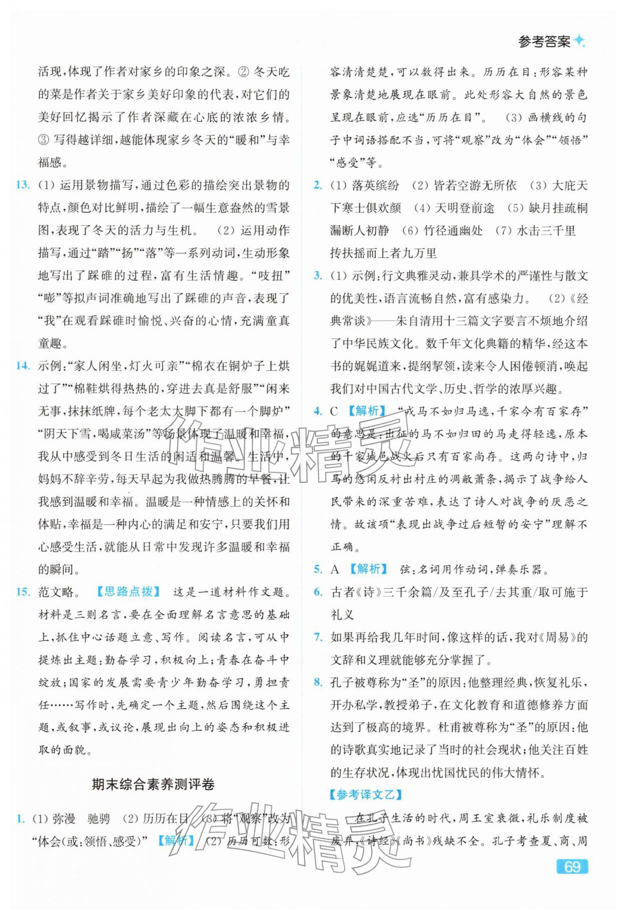 2026年亮点给力提优课时作业本八年级语文下册人教版参考答案第69页
