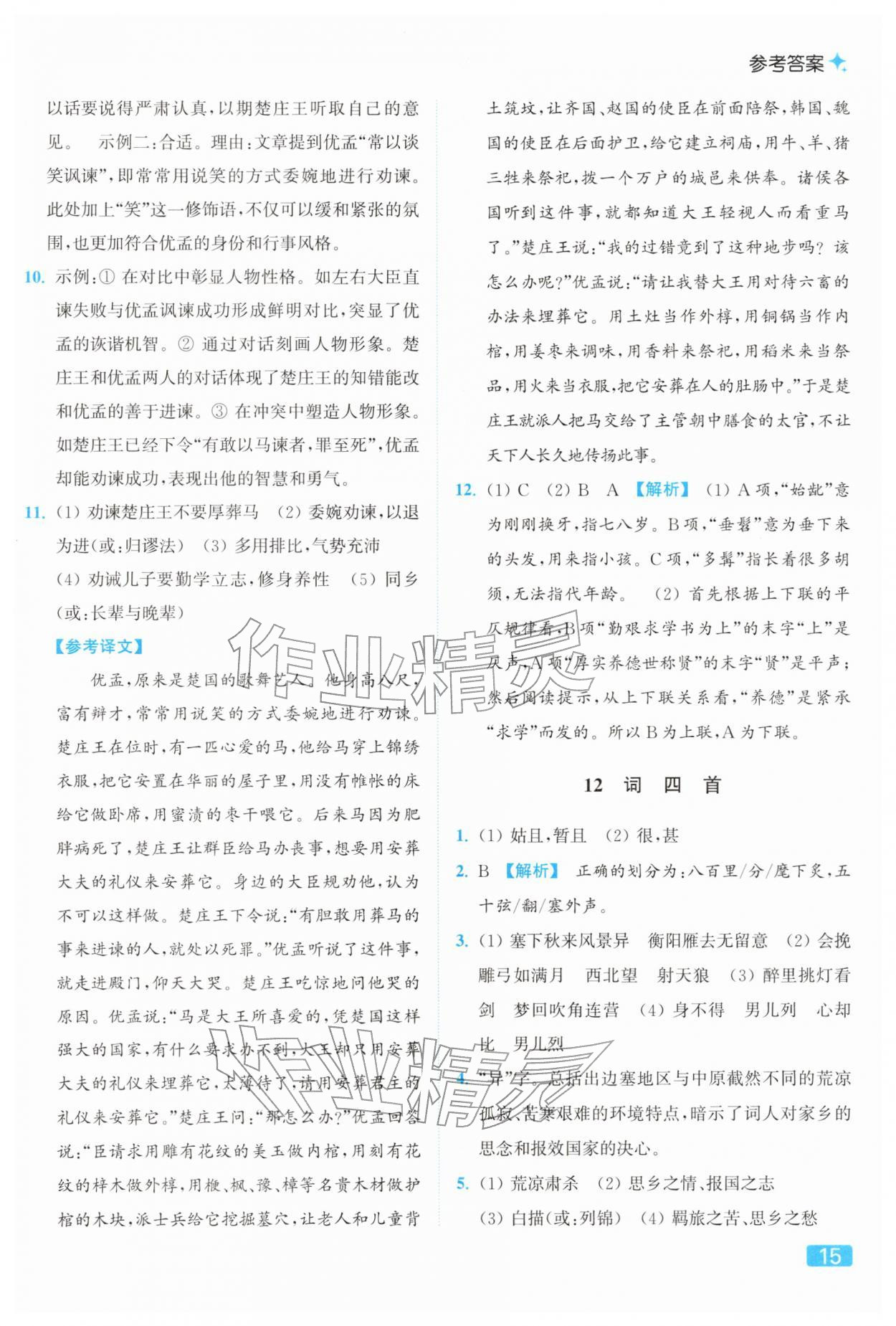 2026年亮点给力提优课时作业本九年级语文下册人教版参考答案第15页