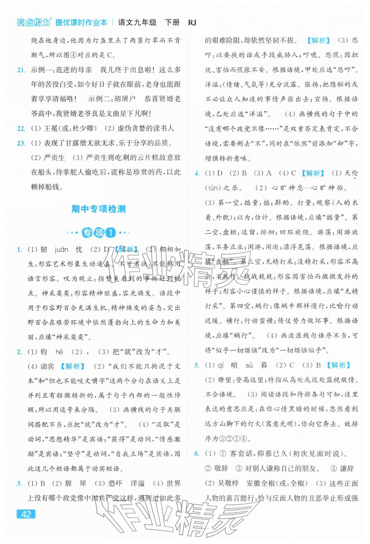 2026年亮点给力提优课时作业本九年级语文下册人教版参考答案第42页