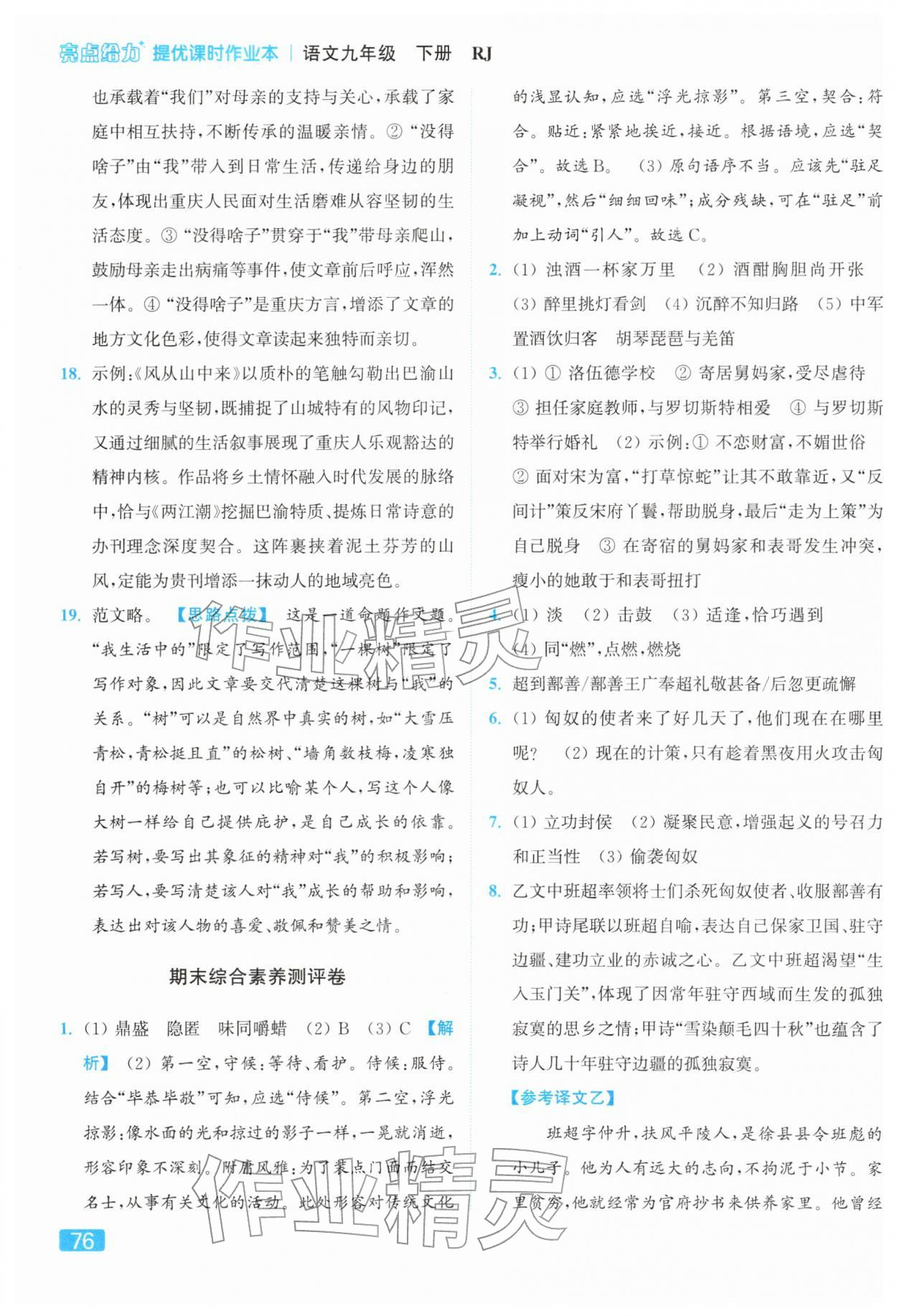 2026年亮点给力提优课时作业本九年级语文下册人教版参考答案第76页