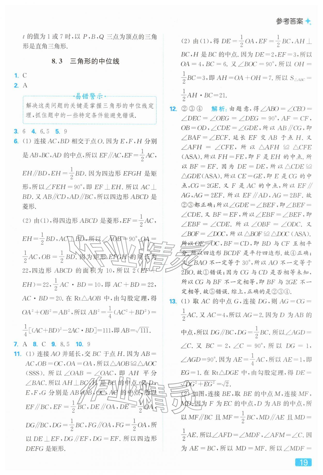 2026年亮点给力提优课时作业本八年级数学下册苏科版参考答案第19页
