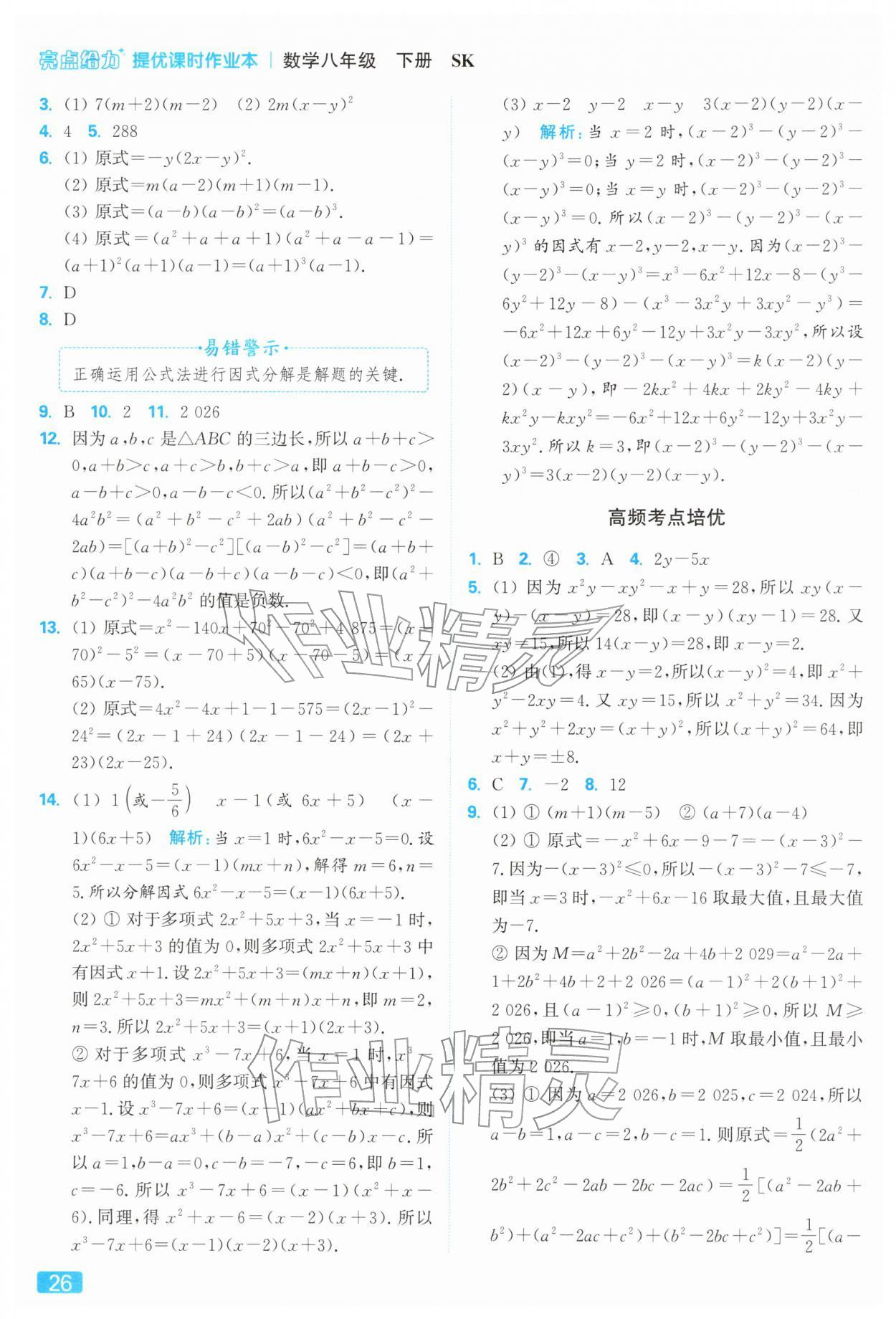 2026年亮点给力提优课时作业本八年级数学下册苏科版参考答案第26页