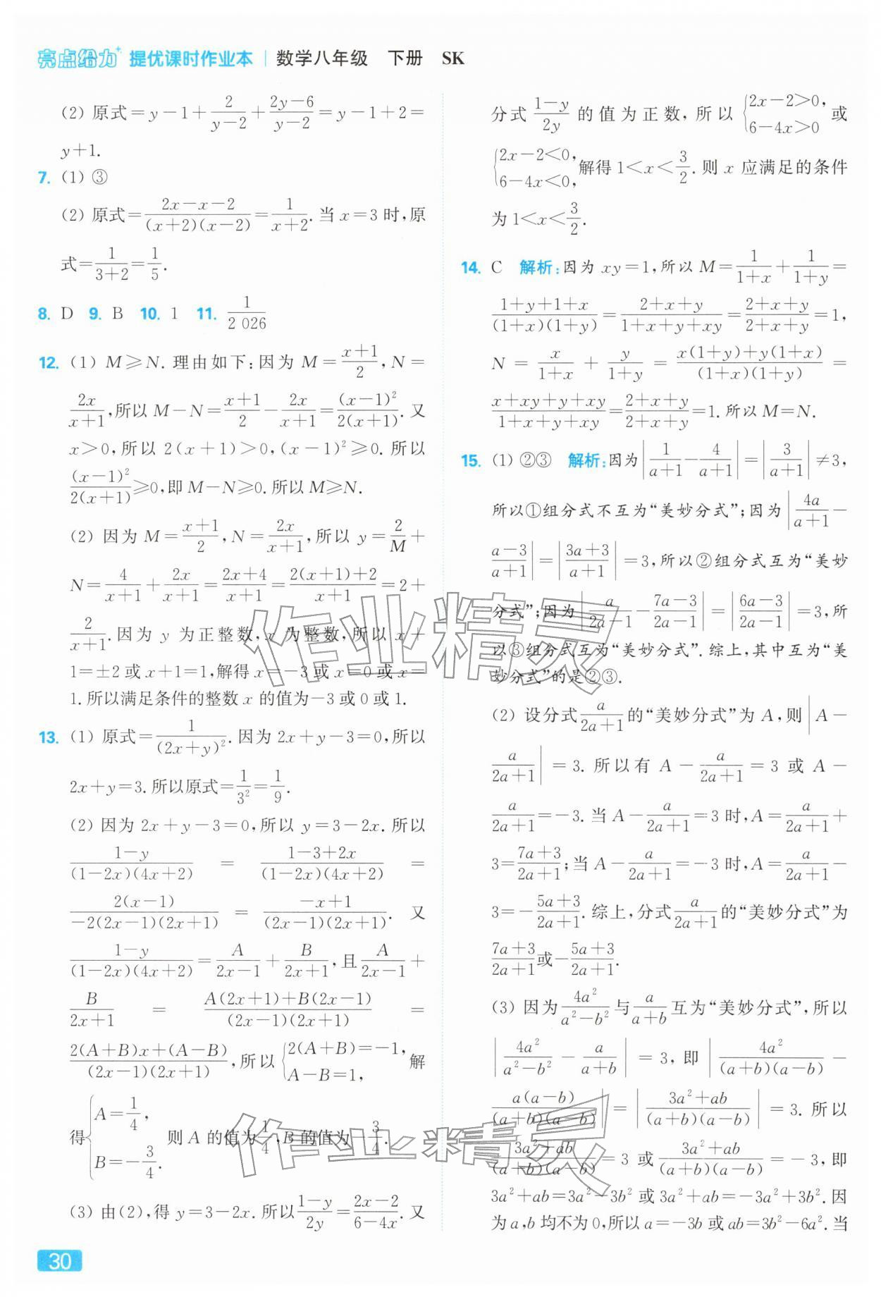 2026年亮点给力提优课时作业本八年级数学下册苏科版参考答案第30页