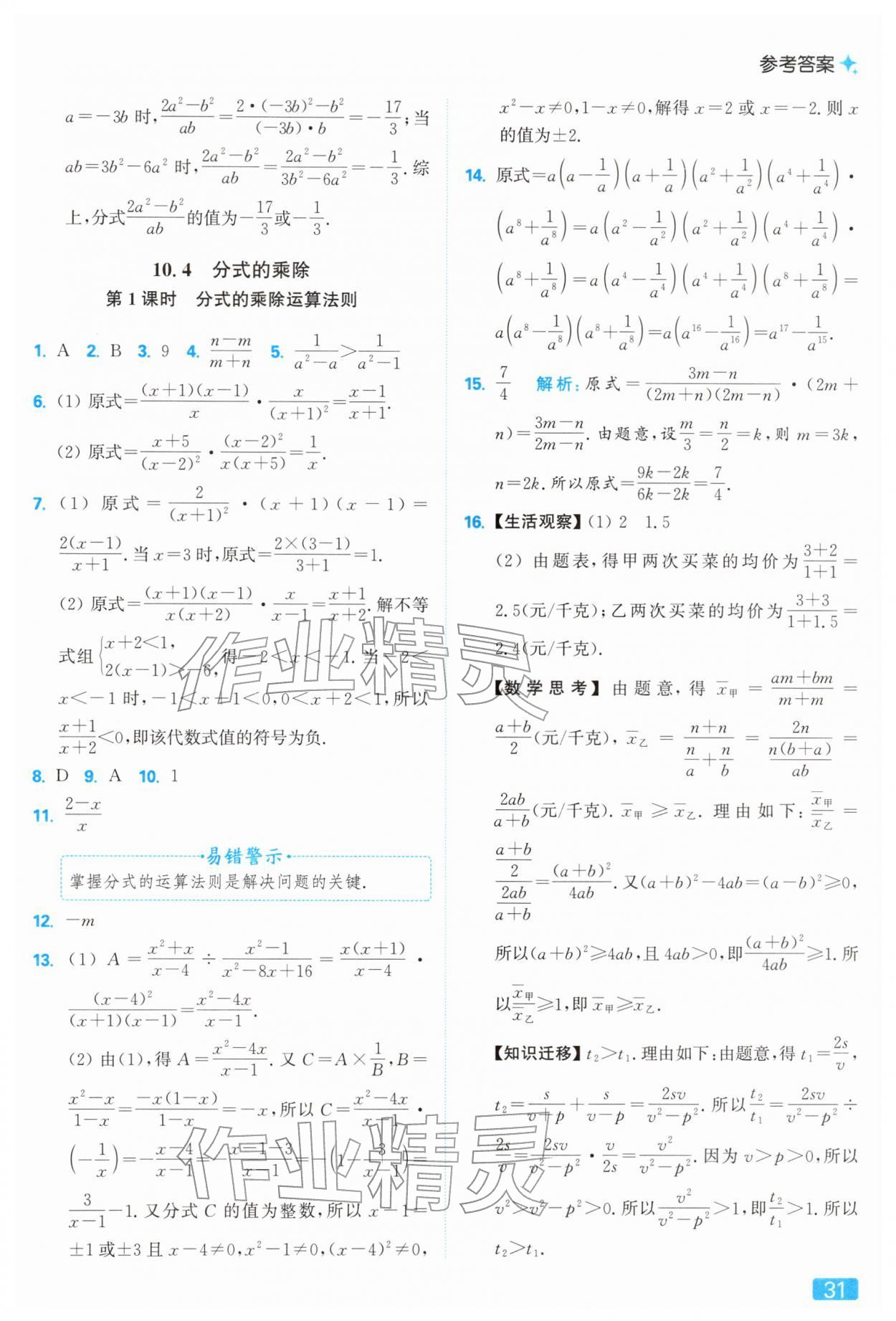 2026年亮点给力提优课时作业本八年级数学下册苏科版参考答案第31页
