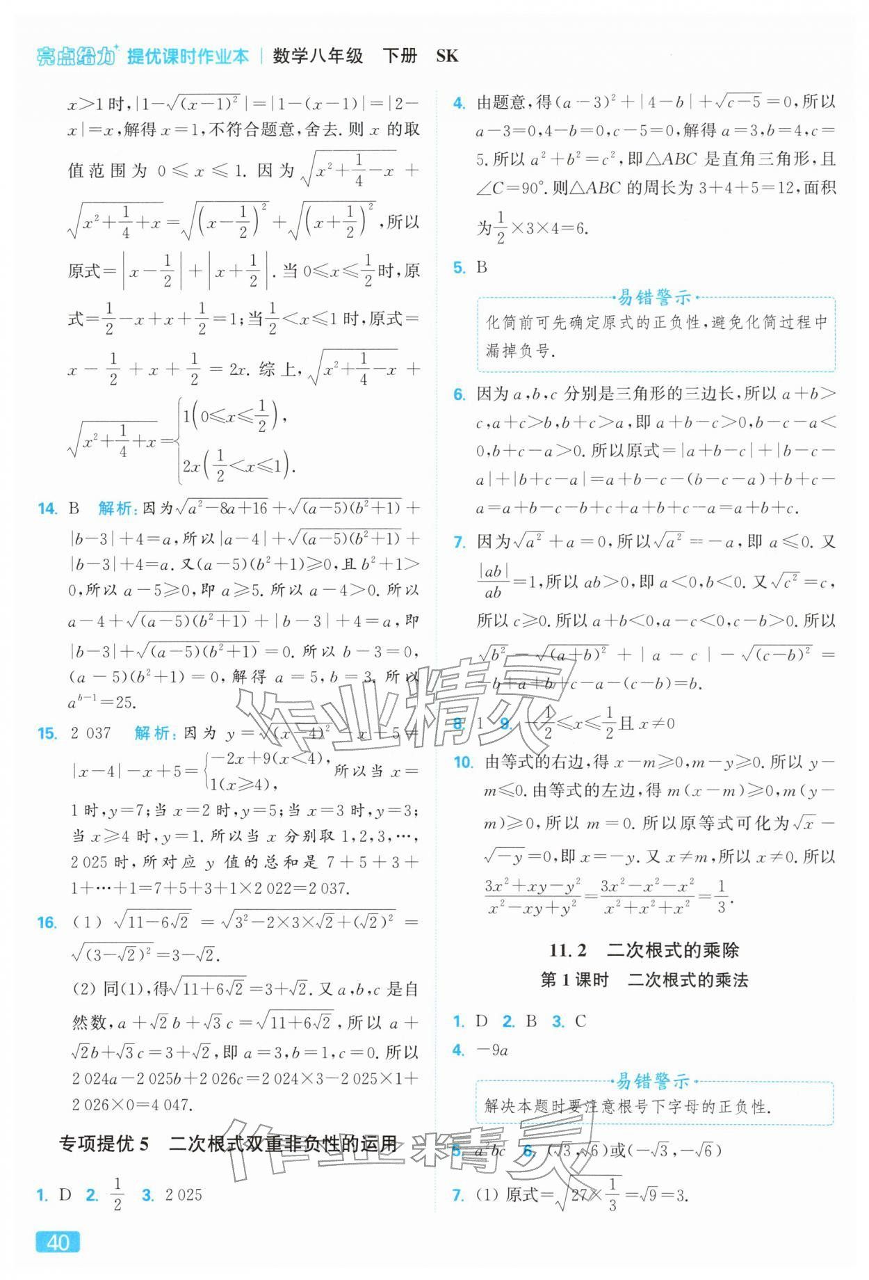 2026年亮点给力提优课时作业本八年级数学下册苏科版参考答案第40页