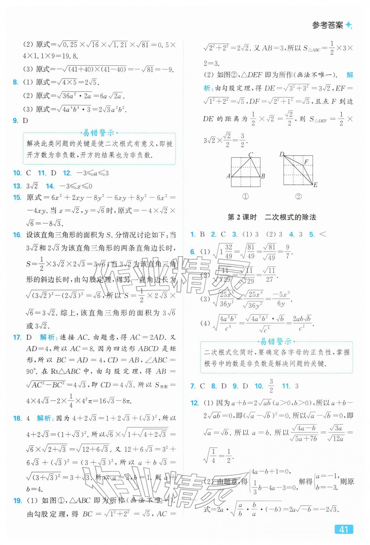 2026年亮点给力提优课时作业本八年级数学下册苏科版参考答案第41页