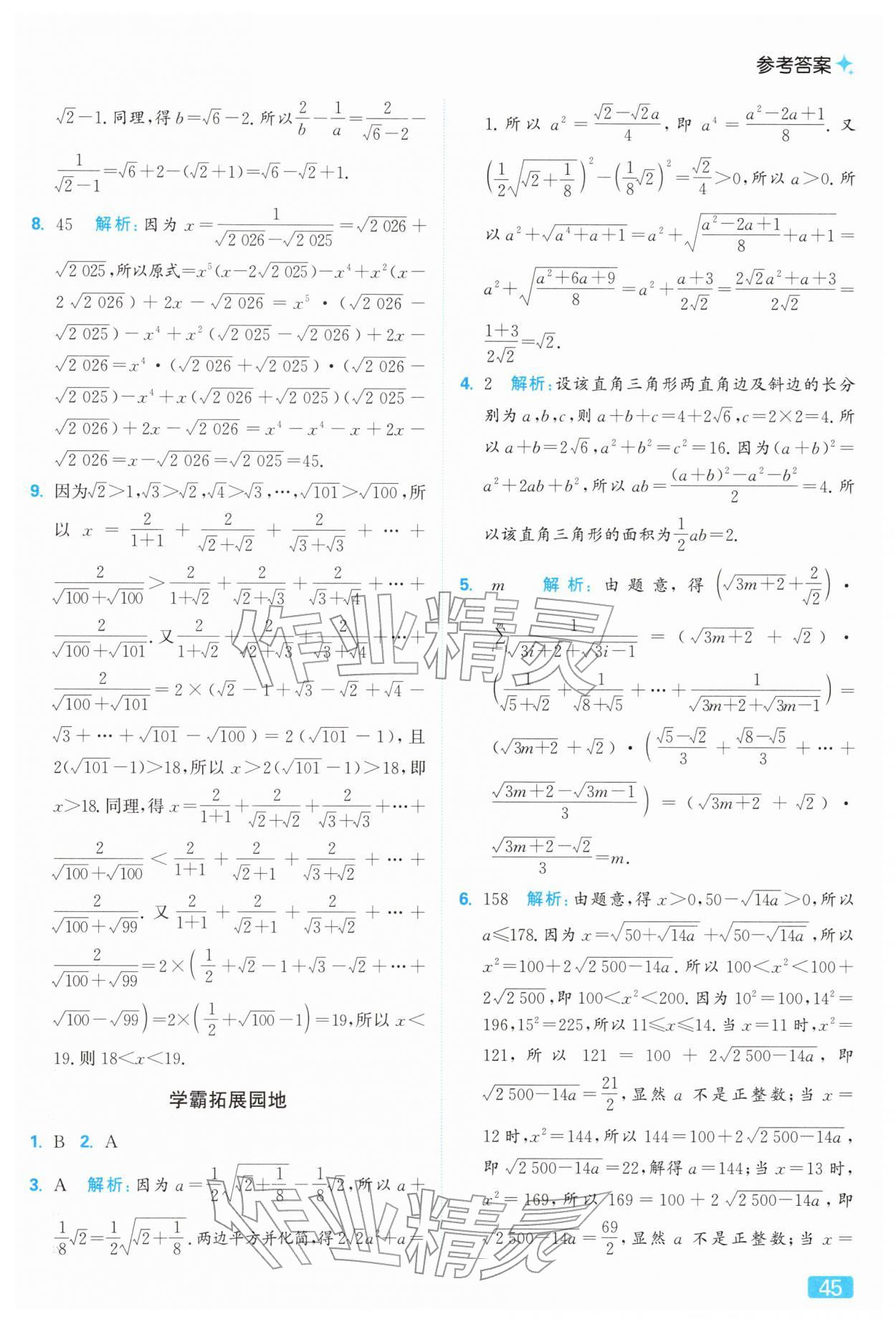 2026年亮点给力提优课时作业本八年级数学下册苏科版参考答案第45页