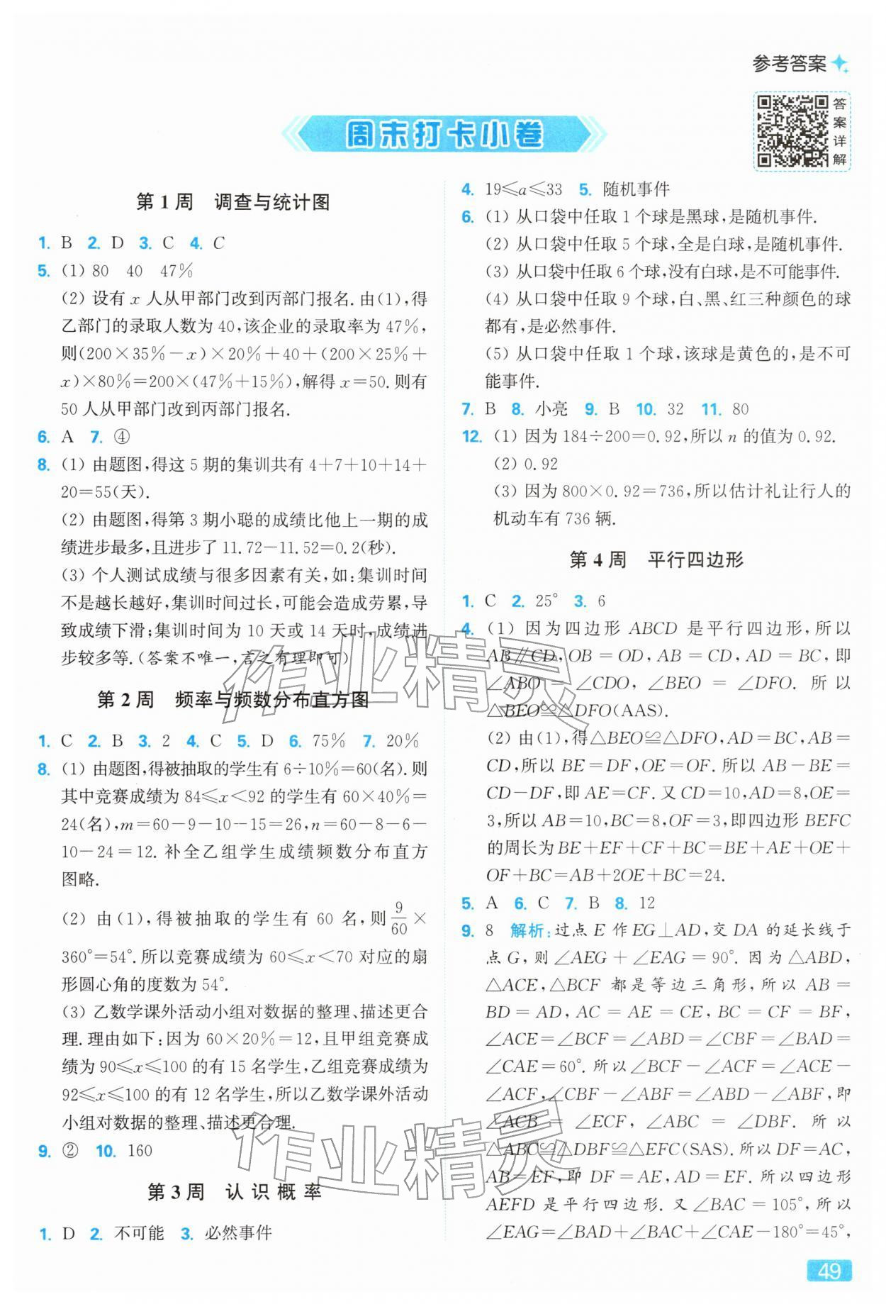 2026年亮点给力提优课时作业本八年级数学下册苏科版参考答案第49页