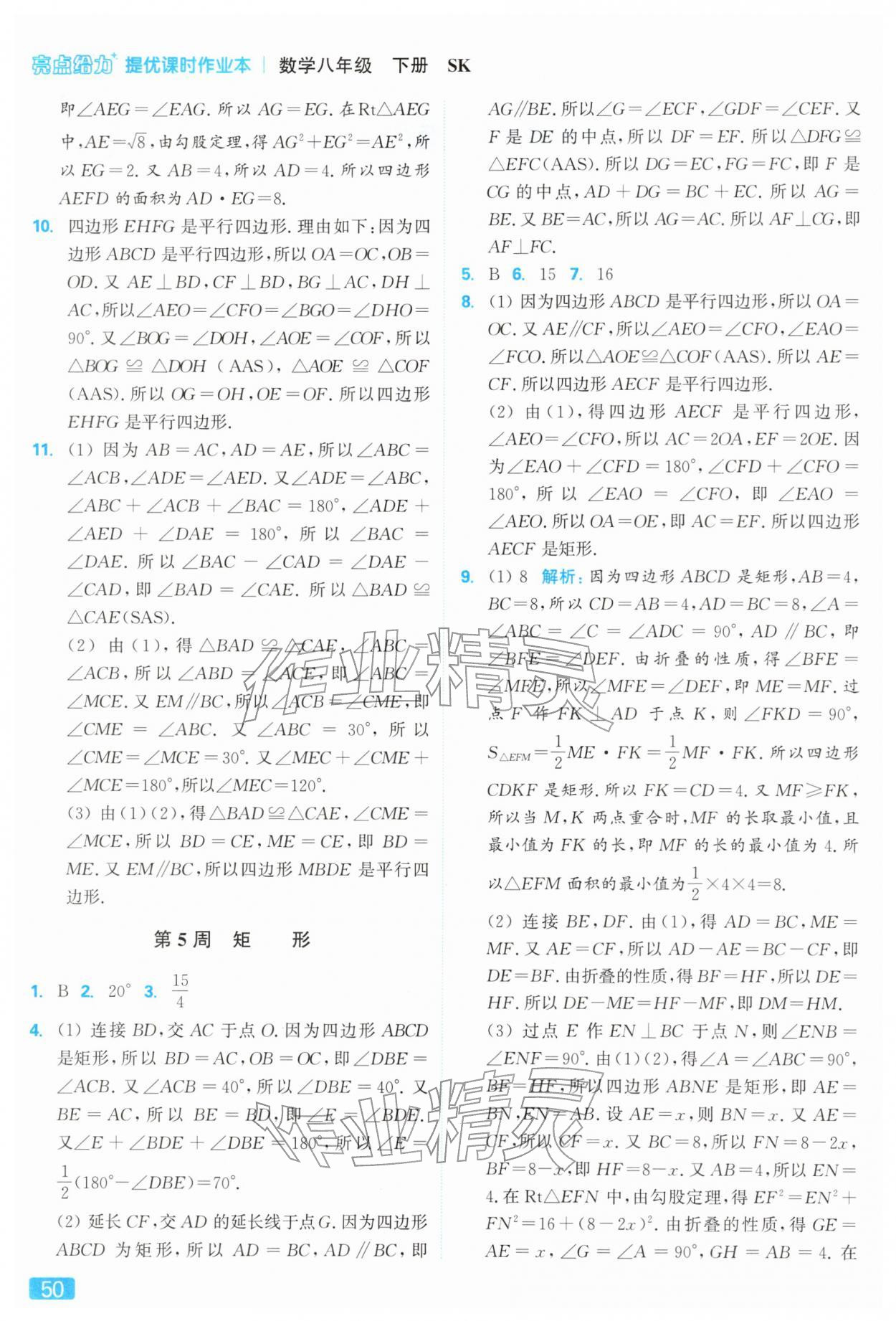 2026年亮点给力提优课时作业本八年级数学下册苏科版参考答案第50页