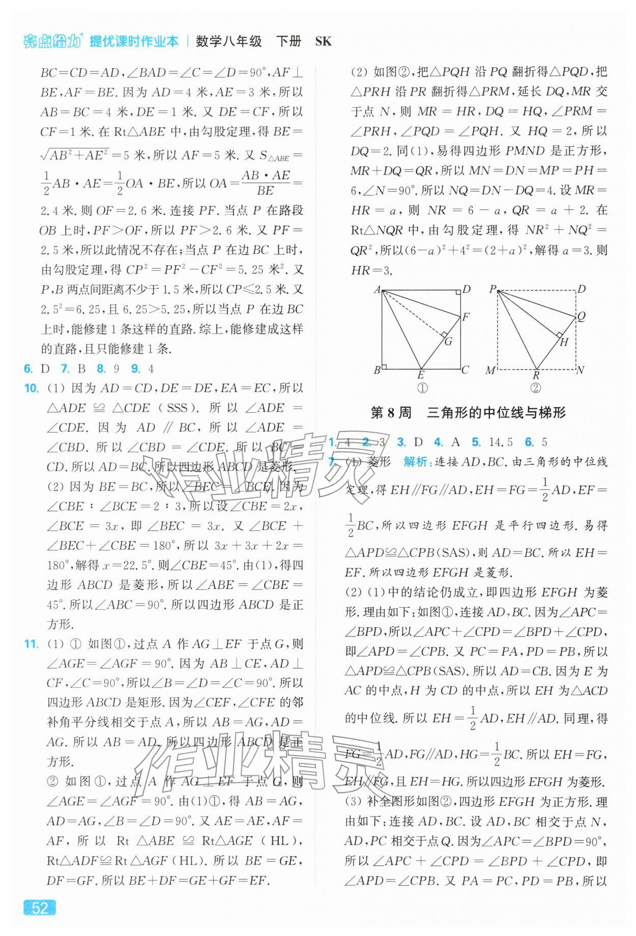 2026年亮点给力提优课时作业本八年级数学下册苏科版参考答案第52页