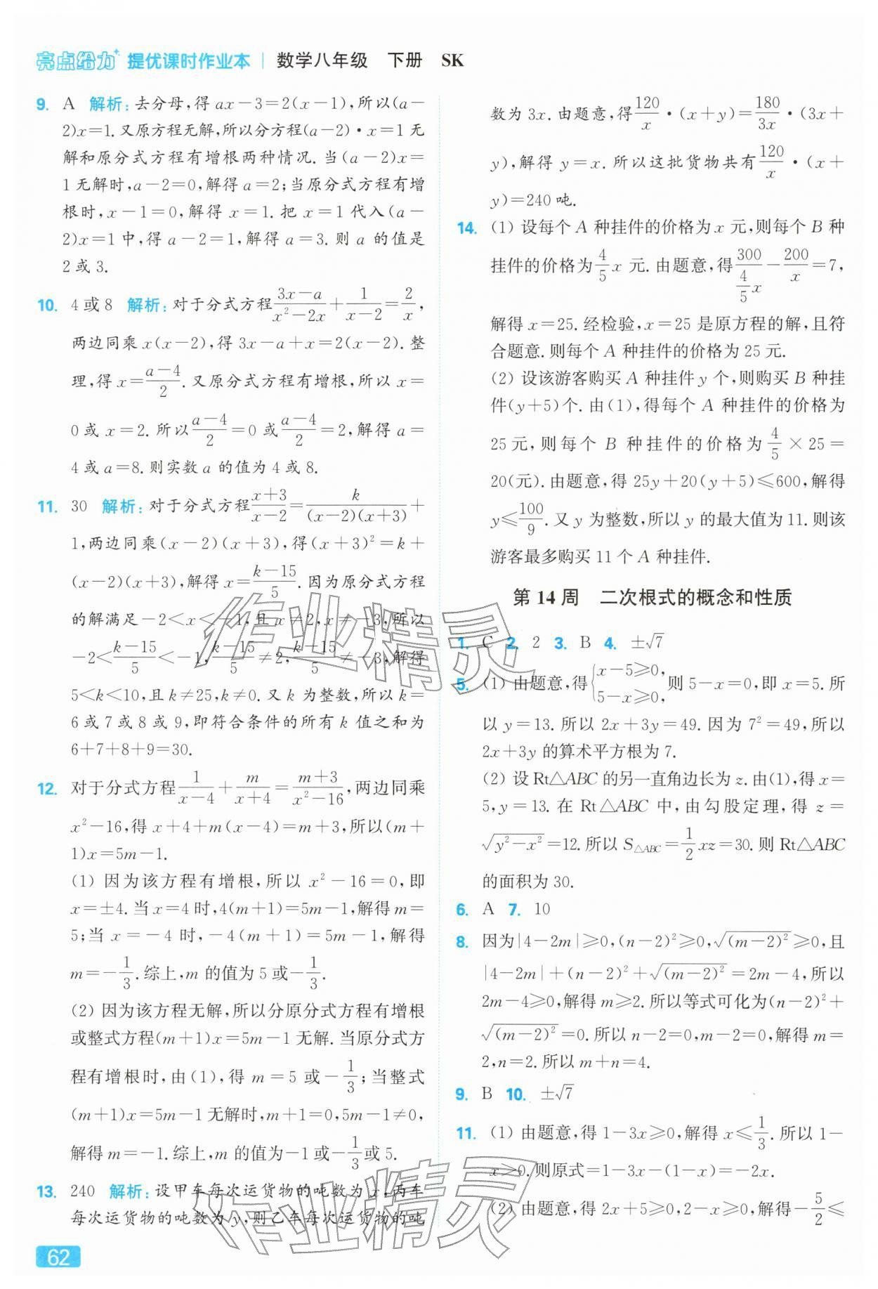 2026年亮点给力提优课时作业本八年级数学下册苏科版参考答案第62页