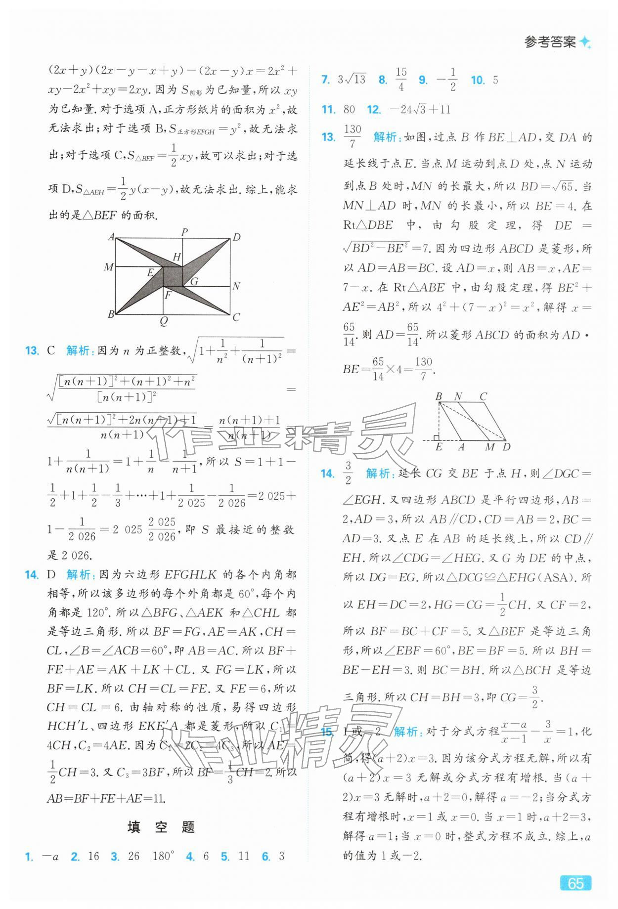 2026年亮点给力提优课时作业本八年级数学下册苏科版参考答案第65页