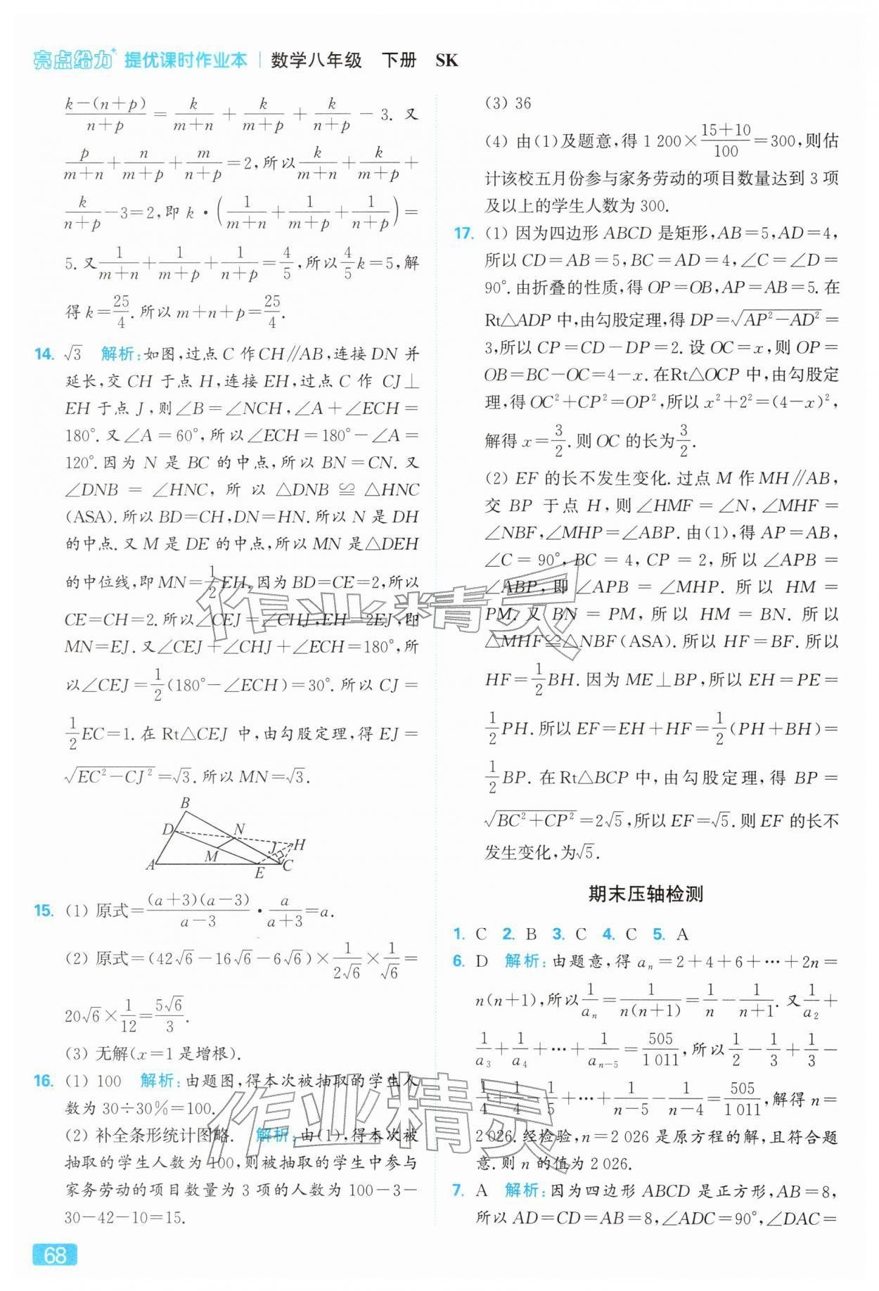 2026年亮点给力提优课时作业本八年级数学下册苏科版参考答案第68页