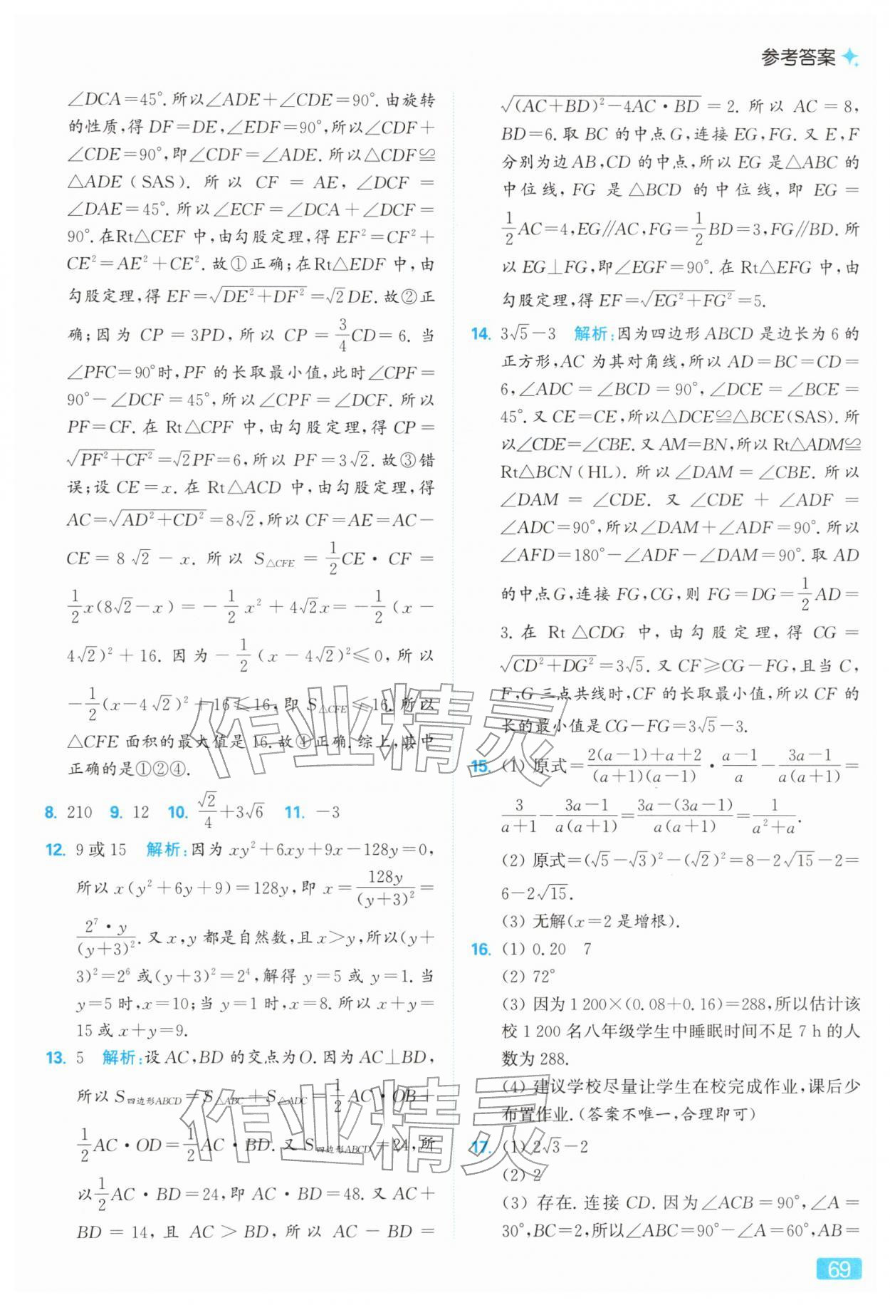 2026年亮点给力提优课时作业本八年级数学下册苏科版参考答案第69页