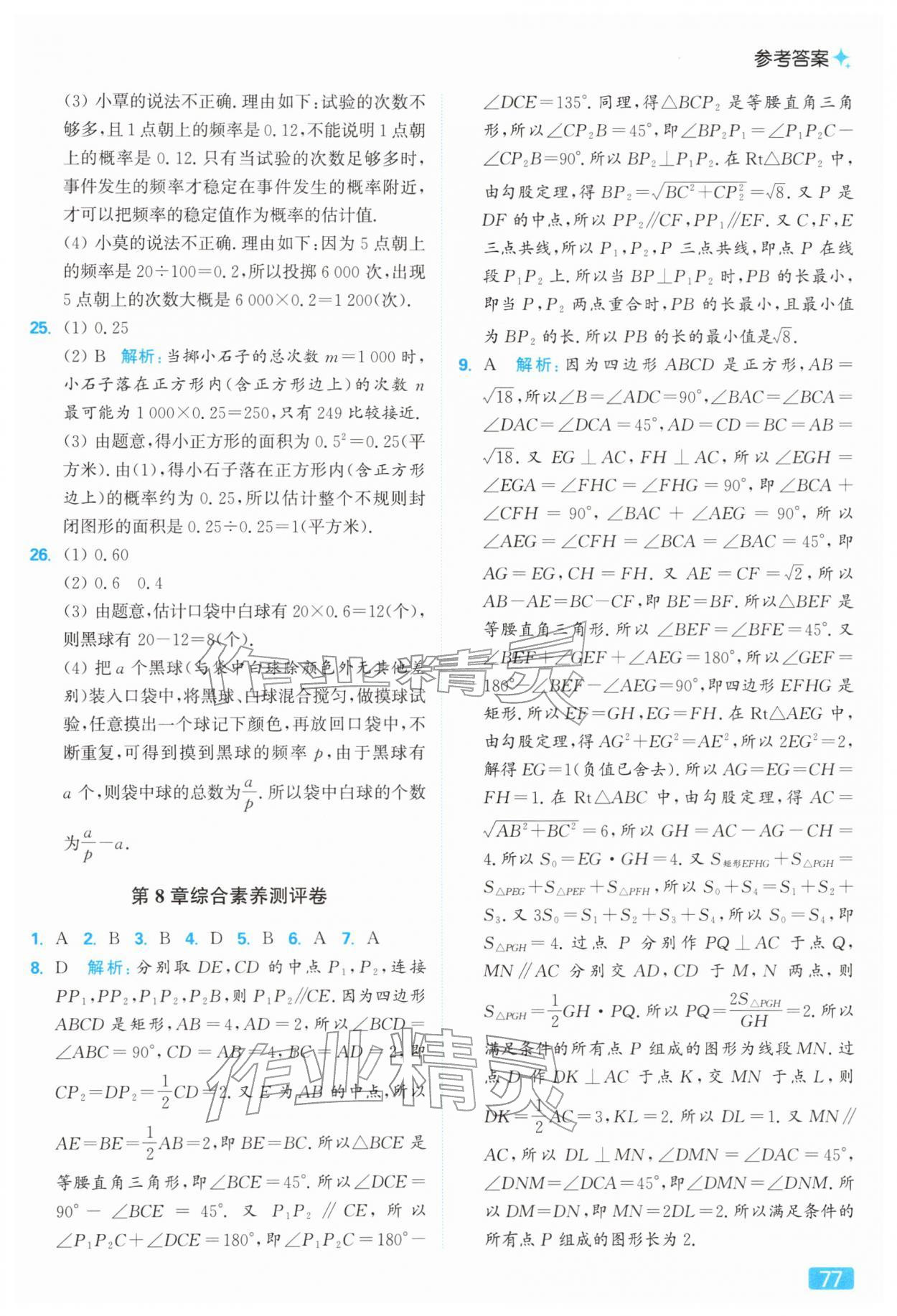 2026年亮点给力提优课时作业本八年级数学下册苏科版参考答案第77页